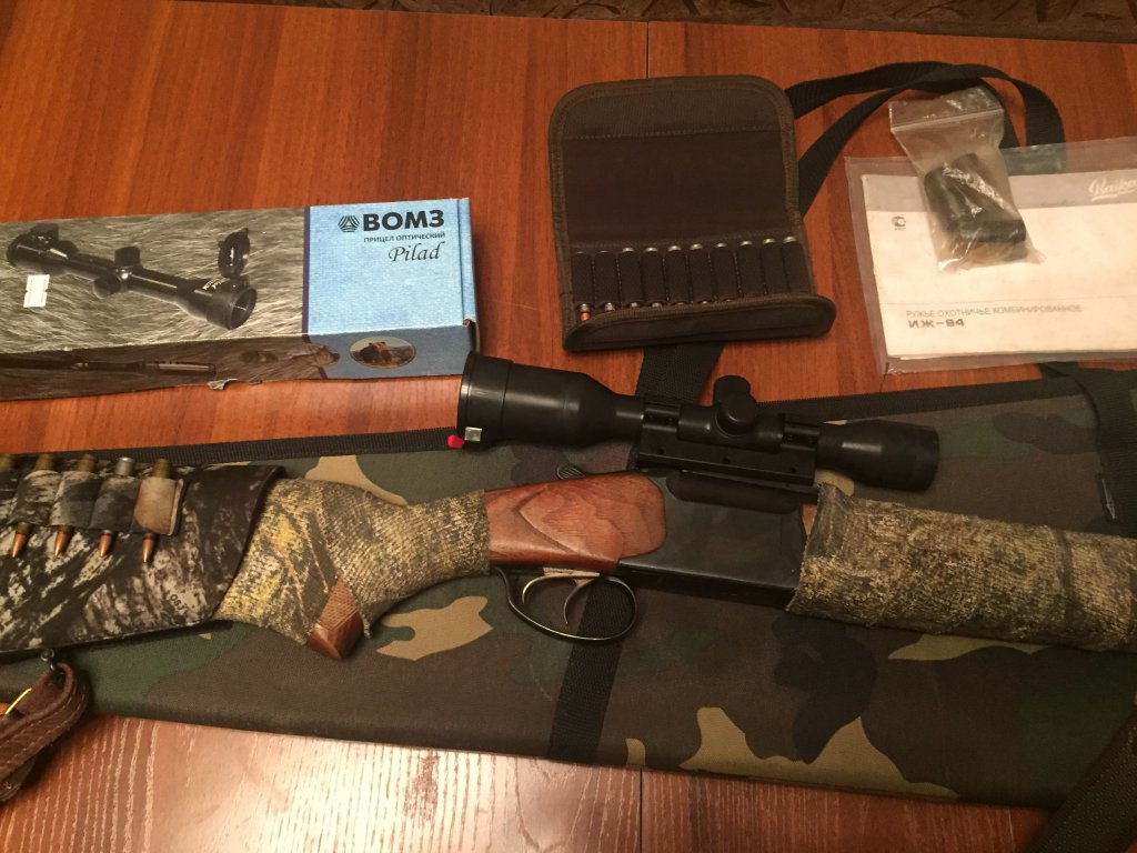 Продам ИЖ-94 верхний 12/76 кл нижний 223Rem. Дата изготовления 2005 год .Оружие в идеале стоит оптика Pilad P4*32М на кронштейнах пристрелено, чехол, патроны, неопреновый патронташ на приклад 6 патронов. На стрел очень маленький использовал несколько раз, есть в арсенале другие варианты, в нем нет необходимости. Ружью прекрасно подходит для ходовой охоты, всегда с собой и ружье и карабин очень удобно. Цена за все 25000 т. 891337166 девять девять .