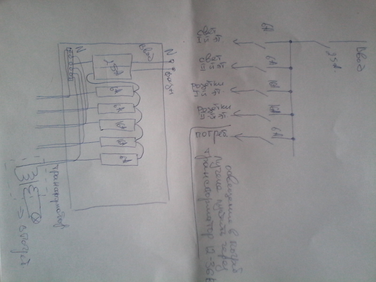 гараж в два этажа,да +погреб.На первом этаже нужен свет ,розетки,на втором свет розетка, в погреб свет с выключателем со второго этажа. Свет на первом какой никакой имеется,но проводка из алюминия,сечение не в курсе какое,да и не важно,свет оставлю на отдельный рубильник.