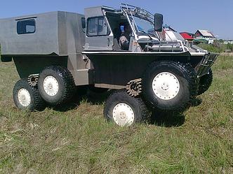 Вездеход «ТИТАН-АБТ-01» разработан и создан на базе ООО « Уральский завод Промэлектроники». В конструкции машины применены узлы и агрегаты, выпускающиеся российским автопромом, что облегчает эксплуатацию и обслуживание. Вездеход предназначен для перевозки людей и грузов общей массой до 1000 кг по грунтам со слабой несущей способностью (снежный покров, болото), а так же для преодоления значительных водных преград. Основными отличиями от аналогичных машин, является наличие гидравлической системы изменения клиренса и управления подвеской, что положительно сказывается на проходимости машины. у нас есть сайт "Уральский завод Промэлектроники" - первый в поисковике по данному запросу Можем его чуть переделать под ваши запросы! Звоните - 8 952 741 32 45 Пишите - uzp2002@mail.ru