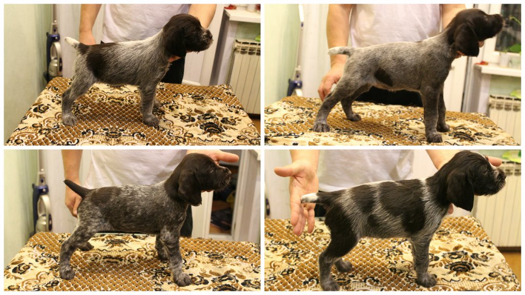 Щенки дратхаара • осталось 1 кобель, 3 суки • Дата рождения: 28.10.2015г. • МООиР (плановая вязка) • • Владелец: Эсаулов А.А. конт. Тел. 89167571438 (Александр) Тел. 89168687155(Елена) Хвосты купированы, на момент продажи (2 мес.) хвосты купированы, клеймены,привиты, документы МООиР, регистрация в РКФ. Родители Мать: Вэлла (от Арчи, Полевой Победитель состязаний (2014г.), - Полевой Победитель состязаний (2012г.) памяти Казакова Г.К., - Полевой Победитель VI Чемпионата дратхааров (2011г.), - Серебряный призёр IV Чемпионата дратхааров, - Бронзовый призер состязаний континентальных легавых, Лучшая молодая собака (2009г.) - Бронзовый призер межпородных командных состязаний (2014г.) - Чемпион России, - Чемпион Евразии, Лучший Кобель, Лучший Представитель Породы (Евразия-2 2010г.),Чемпион РКФ, Чемпион РФОС, - Лучший универсальный дратхаар МООиР - 2009г. - Лучшая молодая собака МООиР - 2009г. - Лучший полевой дратхаар МООиР - 2011г и Салли фом Хертляйнсберг оба класс элита, вл. Якушев Андрон) Класс: ПЕРВЫЙ Родилась: 30.04.2013 Экстерьер: отлично Родословные: РКФ 3825497; МООиР (ВПКОС 4869/14) Дипломы: • 6-III по болотно-полевой дичи • 1-I по утке • 1-II по кровяному следу Отец: ПП Цезарь Фом Беербуш. ( вл.Федоров Д.А. питомник «Веджета») Класс: ПЕРВЫЙ Родился: 04.02.2013 Экстерьер: отлично Родословные: Verein Deutsch Drahthaar e. V. VDD 221604; РКФ 3689899; РОРС (ВПКОС 4868/14) Выставки: • 22.02.2014 — I место на Межрегиональной выставке собак охотничьих пород МВОО ЦО ВУ в младшей группе 2014г. • 07.06.2014 — I место на Ногинской Региональной выставке собак охотничьих пород в младшей группе 2014г. • 13.09.2014 — I место на Пушкинской Региональной выставке собак охотничьих пород в средней группе 2014г. Состязания: • 09.05.2014 — III место на межрегиональных состязаниях дратхааров памяти Казакова Г.К. + «Лучшая молодая собака» Д-II 76 баллов. • 24/25.05.2014 — II место в составе команды Ногинска на Московских Областных Межрегиональных Межпородных командных состязаниях легавых собак по болотно-луговой и полевой дичи 2014. «Лучшая молодая собака» Д-III 71 балл. • 31.05.2014 — I место на IX Чемпионате дратхааров по б/л и полевой дичи памяти Сомова В.К. — Д-III 82 балла. • «Лучшая собака состязаний» • «Лучшая молодая собака» • «Лучший натасчик» • Победитель внутрипородных состязаний дратхааров МООиР по полю. • 12.10.2014 — II место в составе команды дратхааров питомника «ВЕДЖЕТТА» на состязаниях по Вольерному барсуку «Кубок МВОО ЦО ВУ» + «Лучшая молодая собака» Д-II 77 баллов. • 18.10.2014 — III место на ВПС дратхааров МООиР по Вольерному кабану,вольерному барсуку и кровяному следу. В/К-Д-II 77б;В/Б-Д-III-75б;кр.след Д-II-62б. • По итогам 2014 г. Лучшая универсальная собака сезона 2014 года секции дратхааров МООиР. • 21.03.2015 — Чемпионат России по вольерному кабану. Д-III 68 баллов. • II место на Чемпионате России по вольерному кабану. • Породный Победитель на Чемпионате России по вольерному кабану. • 21.03.2015 — Чемпионат РКФ по вольерному барсуку. Д-III 69 баллов. • II место на Чемпионате РКФ по вольерному барсуку. • Породный Победитель на Чемпионате РКФ по вольерному барсуку. • 09.05.2015 — I место на межрегиональных состязаниях дратхааров памяти Казакова Г.К. Полевой Победитель. Д-II 80 баллов. • 16.05.2015 — I место на X Чемпионате дратхааров по б/л и полевой дичи памяти Сомова В.К. Полевой Победитель — Д-II 82 балла. • 23.05.2015 — II место на Сертификатных (САСТ) состязаниях по б/л и полевой дичи. Д-II 75 баллов. • 30.05.2015 — I место на состязаниях молодых (до трё