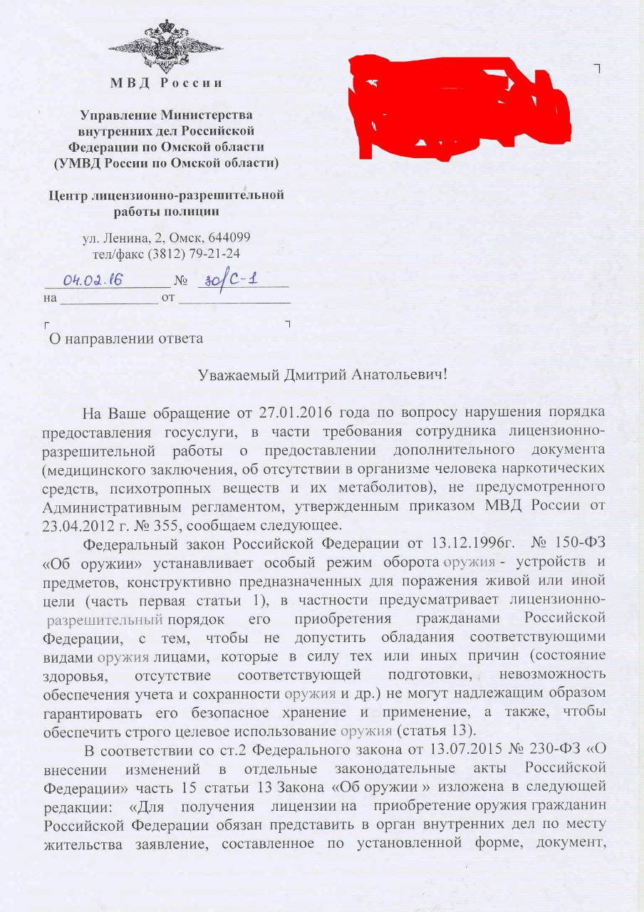 вот ответ для кемеровчан. через неделю придет ответ МВД РФ, но там похоже будет противоположное мнение.