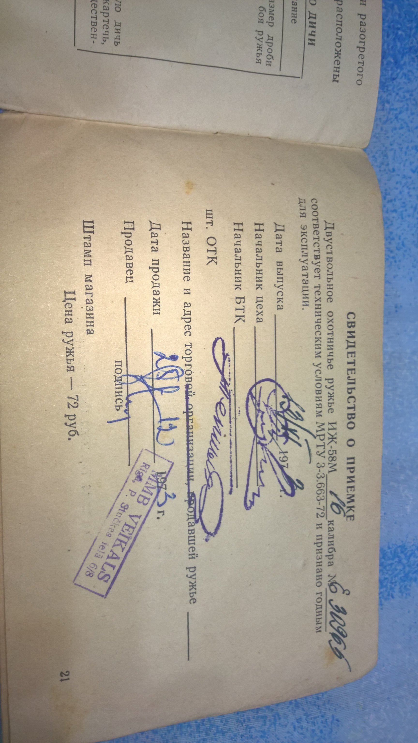 Вес ружья не подскажите? И можно фото снизу стволов, где клейма?