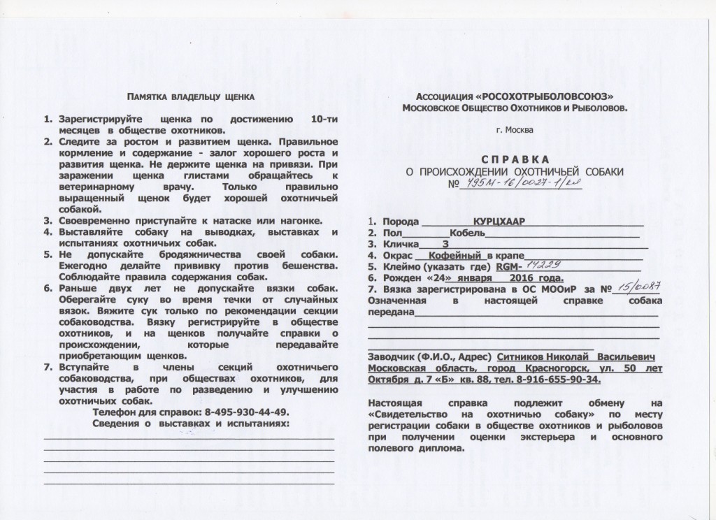 ЦКС МООиР «Курцхаар-II». http://kc-kurzhaar.ru/?p=5630