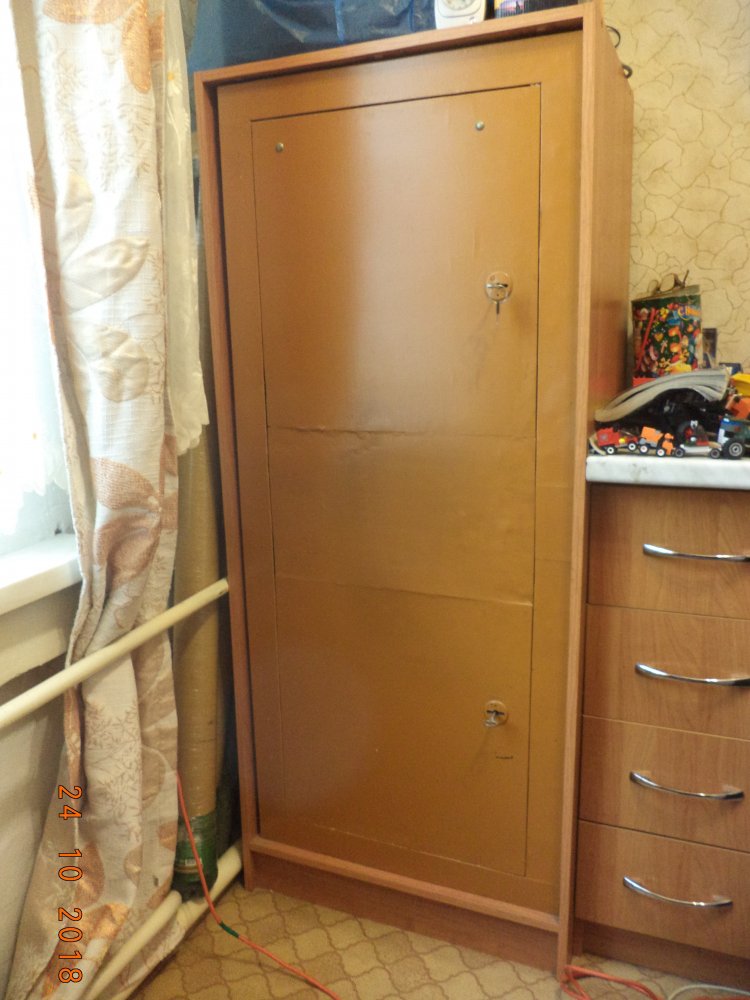 Напомнил оружейку в армии,там еще ремнем обит был.Хороший выход.