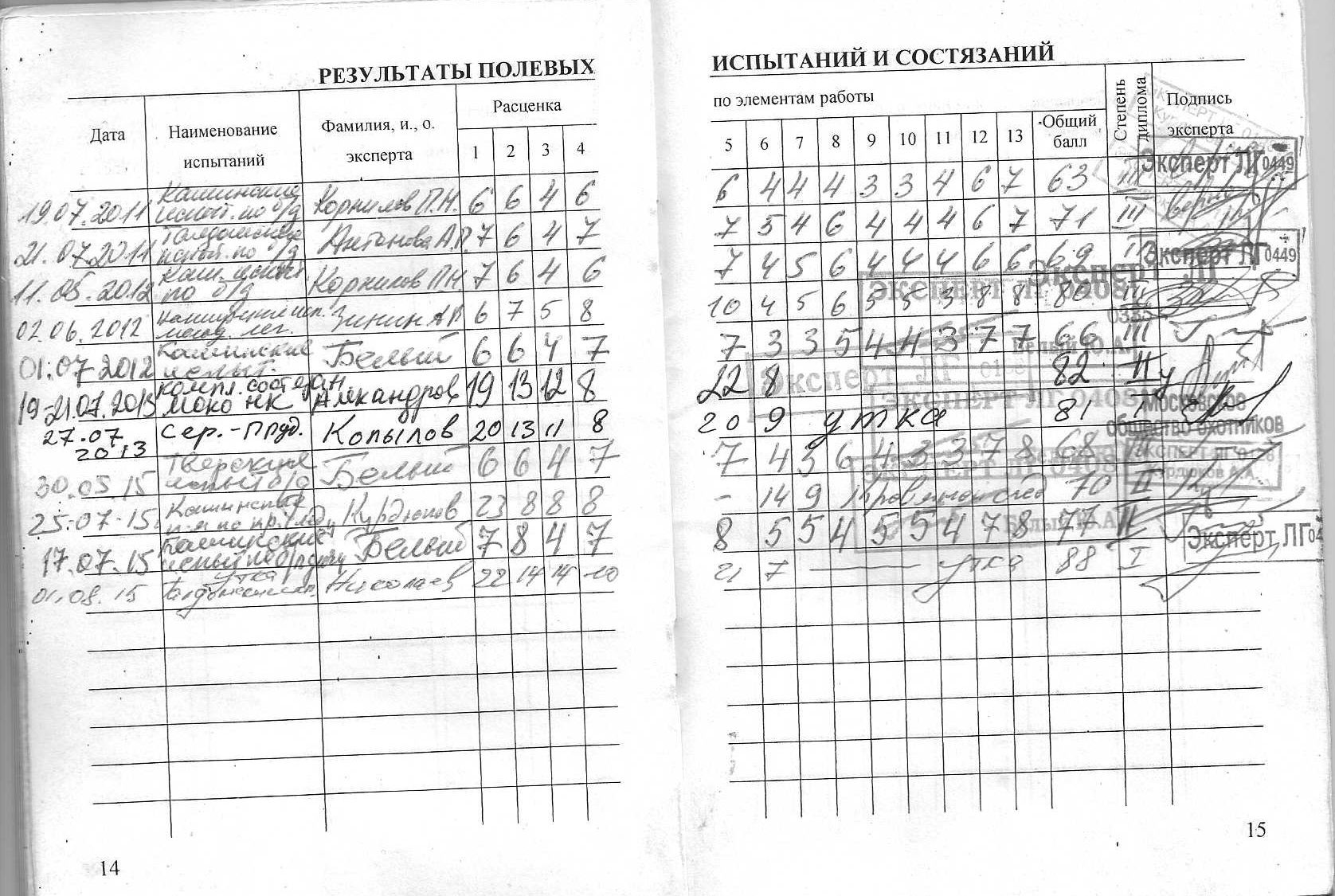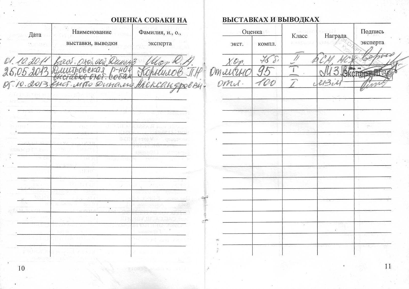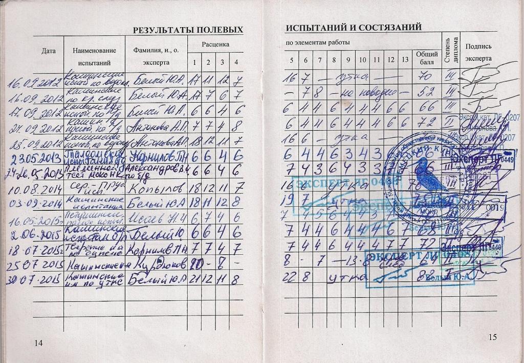 Полевые дипломы: 2-IIIп/д; II,4-III б/д; 2-I, IIу; IIк/с.