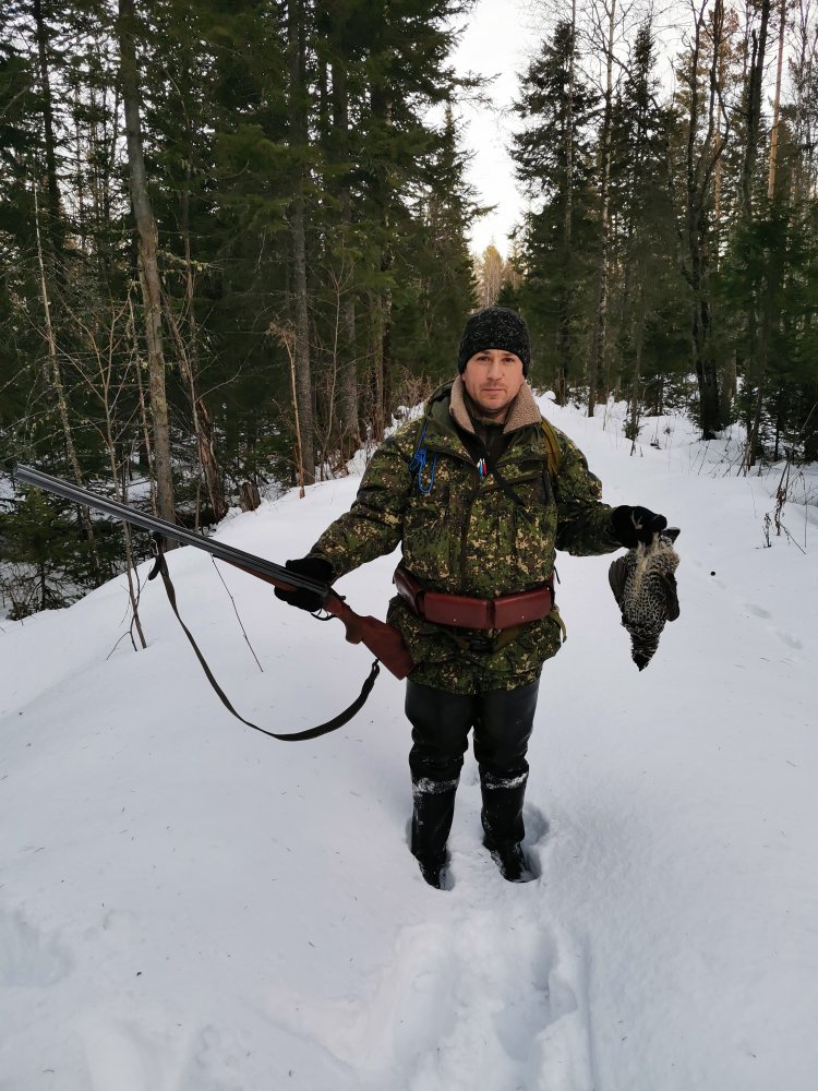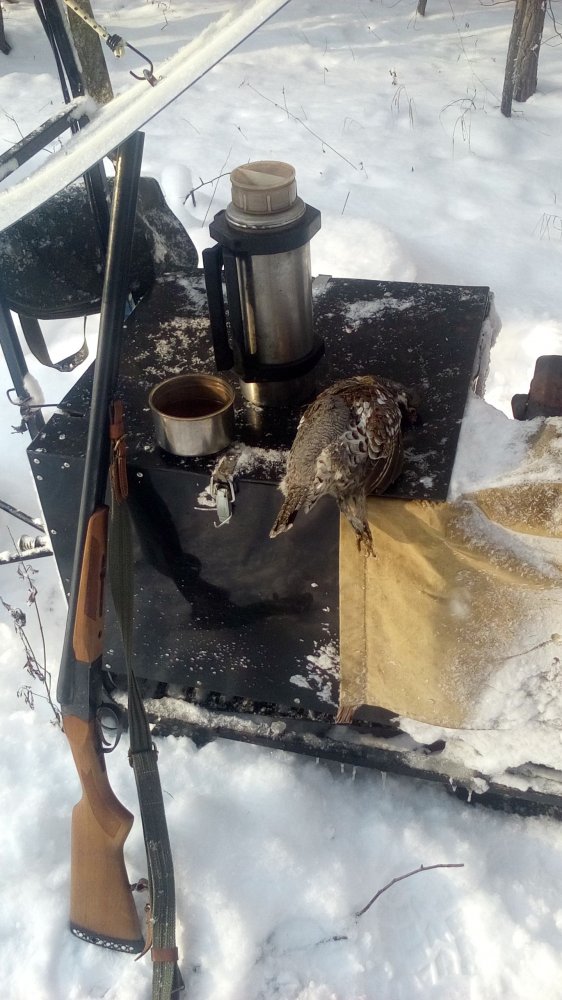 Тоже одного сегодня взял. Правда с погодой не повезло, порывы ветра 17-20м/с, снег местами глубокий да ещё с корочкой, передвигаться очень тяжело. Из 3х отозвавшихся на манок рябчиков , на расстояние выстрела подлетел только один