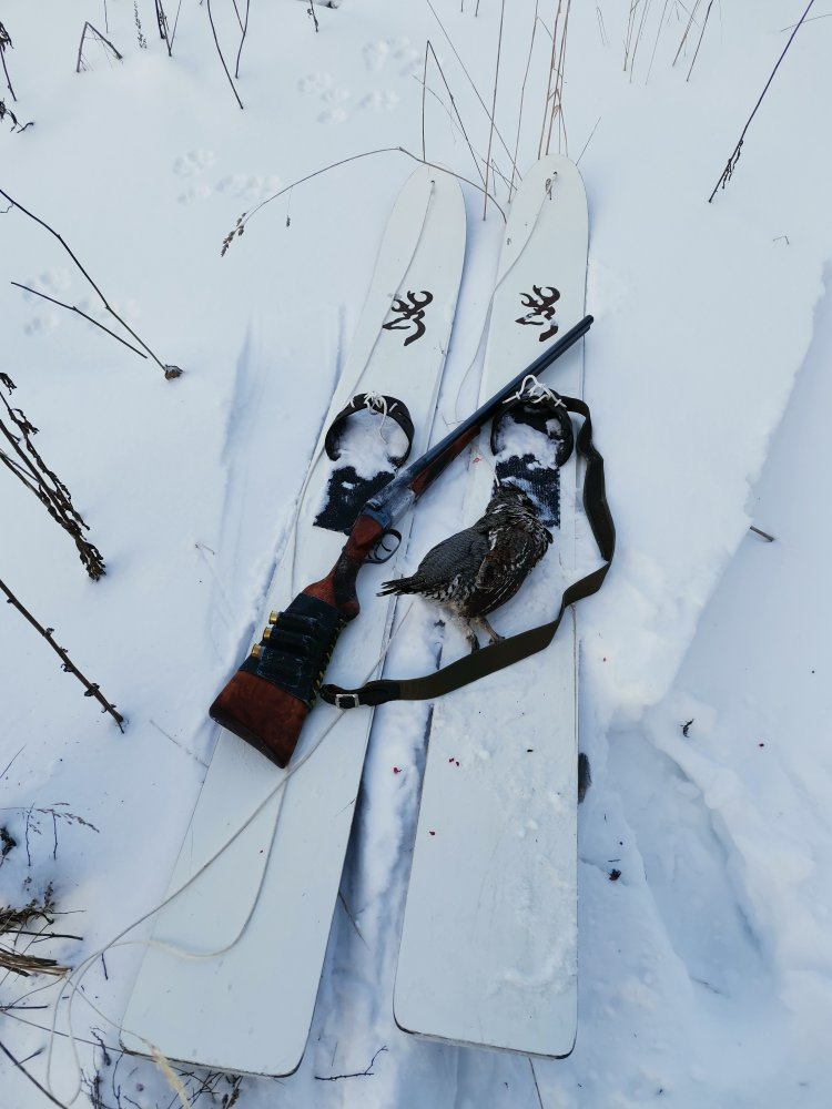 С лунки поднял. 16й калибр, дробь №2 (самокрут), заряжен был на степашку, но тут рябчик с подног почти вылетел, перезаряжать некогда было. Попадание 1й дробины в ухо на вылет, задело глаза и мозг. В общем тушка целая