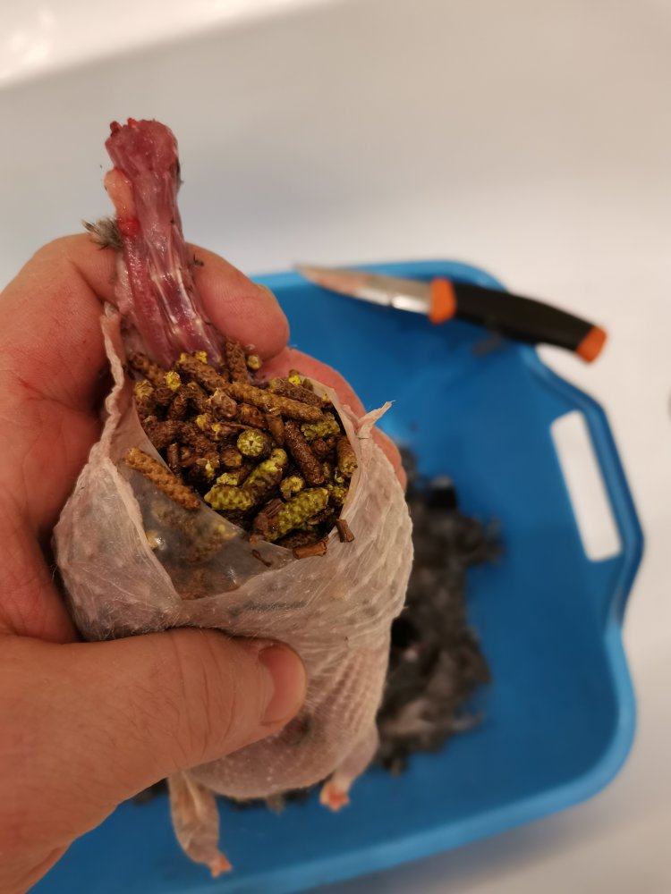Да, перья общипал с сыном(3.5 лет) и обнаружилось, что нету дробин не в тушке не в шеи. Пришлось искать место попадания