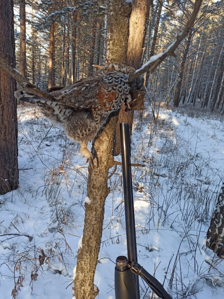 Такая погода на неделе! Отложил в сторону дела, поутру выехал в лес, захватил тетеревиные чучела, но к заветной берëзе не смог пробраться из-за снежных перемëтов. Не стал насиловать автомобиль, а проехал, по асфальту и накатанной проселочной дороге, до знакомых мест с непуганными рябчиками. Уже в 9-00, не дожидаясь рассвета, свистнул. В течении минут 15÷20 откликнулись 5(пять), в том числе самочка Начался т-а-к-о-й хор! Их пятеро и "нас" двое(я с манками самка/самец) . Думал, ну тут я "повеселюсь" Опа! А они не летят! Пришлось сменить тактику. Помолчал с полчаса. Эти, пятеро, тоже потихоньку замолчали. Чуток сменил место. Свистнул. Подлетел один, думаю старший из семейства(пëрышки потом посмотрел) , сел, в метрах 30, прикрыв свою грудку веткой, как бронежилетом. Стрелял троечкой, на удачу. Удача случилась, зацепил шею. В итоге забрал "ветерана" с собой... Удивился поведению этого выводка, как будто они ещë и не разлетались, как бывает обычно к зиме.
