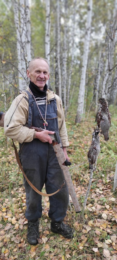 Открылся, наконец, по рябчику, сезона 2025 г.! Показалось, что и рябчик заждался уже манка, потому что отвечал и летел, порой, мне показалось, на самую откровенную фальш. Удовольствие от прогулки получил неимоверное! Тут и рябчики, тут и тетеревов, чернышей, 3-х шт., поднял из травы, на самца косули, на лëжке, чуть не "наступил", и послушал как лось орëт в логу, недалеко от моей тропы(11-00 утра, а он в "голосе"!), похоже у них какая то активная фаза гона. А когда мне напомнили, что сегодня еще и День охотника, утвержденный Президентом в 2013 г. (кстати, всех причастных- с Праздником!), понял, что вышел сегодня утром в лес не зря... Не мог не сделать, в честь Праздника, небольшое селфи с трофеями...