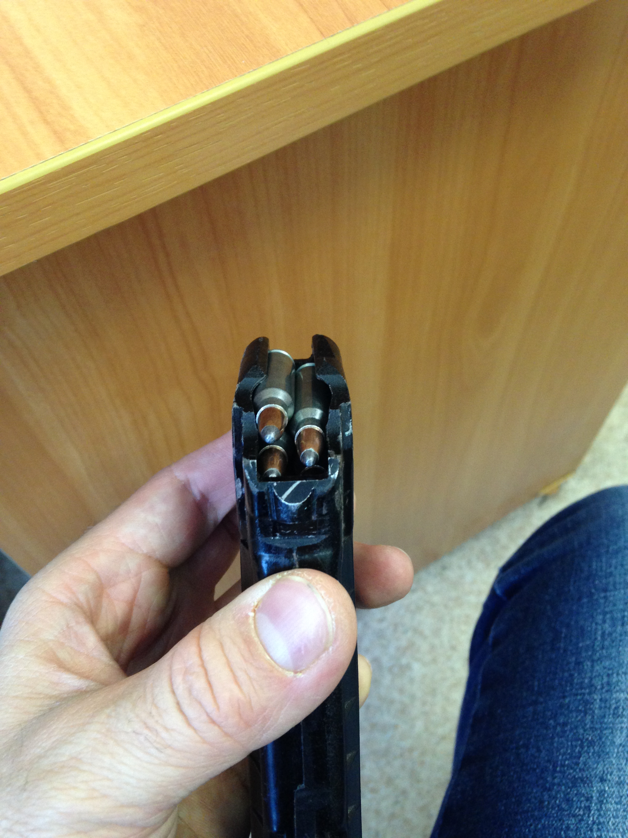 Продаю из наличия 2 магазина АК ("как есть", вроде они под 5.45), их под .410 предыдущий владелец адаптировал (сточил выступ на платформе приемника патрона). Я сделал отдельные платформы, так что могут не хитрыми действиями как .410 принимать, так и 5,45 и .223 патроны. Видео вот: https://yadi.sk/i/werbLB2vqv6GQ Сколько влазит 5.45 не знаю, нет возможности проверить. .410 влазит 9 штук. .223 влазит >11 (максимально сколько входит нет возможности проверить). Цена 350р/шт. Если сразу 2 = 600р/комплект.