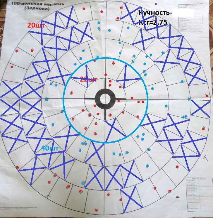 А номер дроби то какой и номинал д/с? Судить о чем либо пока непросто. Пока можно сказать что показатель Ксг весьма существенно меняется (от 1,52 до 2,75) на одном и том же патроне, у одного и того же ствола ружья, если я все правильно понял. Хотя, глядя на мишени можно подумать что стреляли из абсолютно разных стволов. Кучность и равномерность осыпи адекватно оценить пока нельзя, ибо неизвестен номер дроби и номинал д/с.