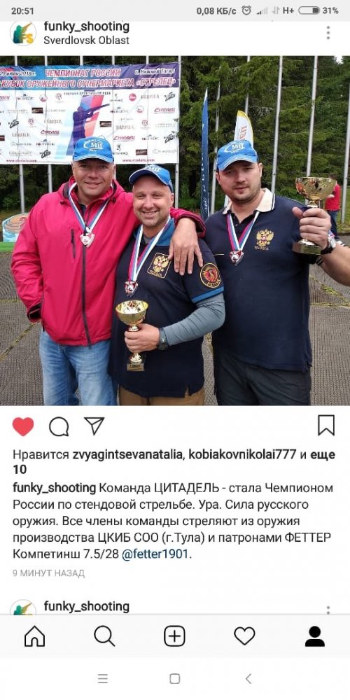 28-29 июля в СЦ «Демидовский» (г. Нижний Тагил) прошел Чемпионат России по спортинг-дуплетной стрельбе. Поздравляем Дмитрия Ильенко, Анатолия Корпусова, Алексея Васильева и всю команду «Цитадель» (МЦ) с первым местом и званием Чемпионы России. Желаем команде «Цитадель»(МЦ) дальнейших успехов вместе с патроном Феттер Компетишен.