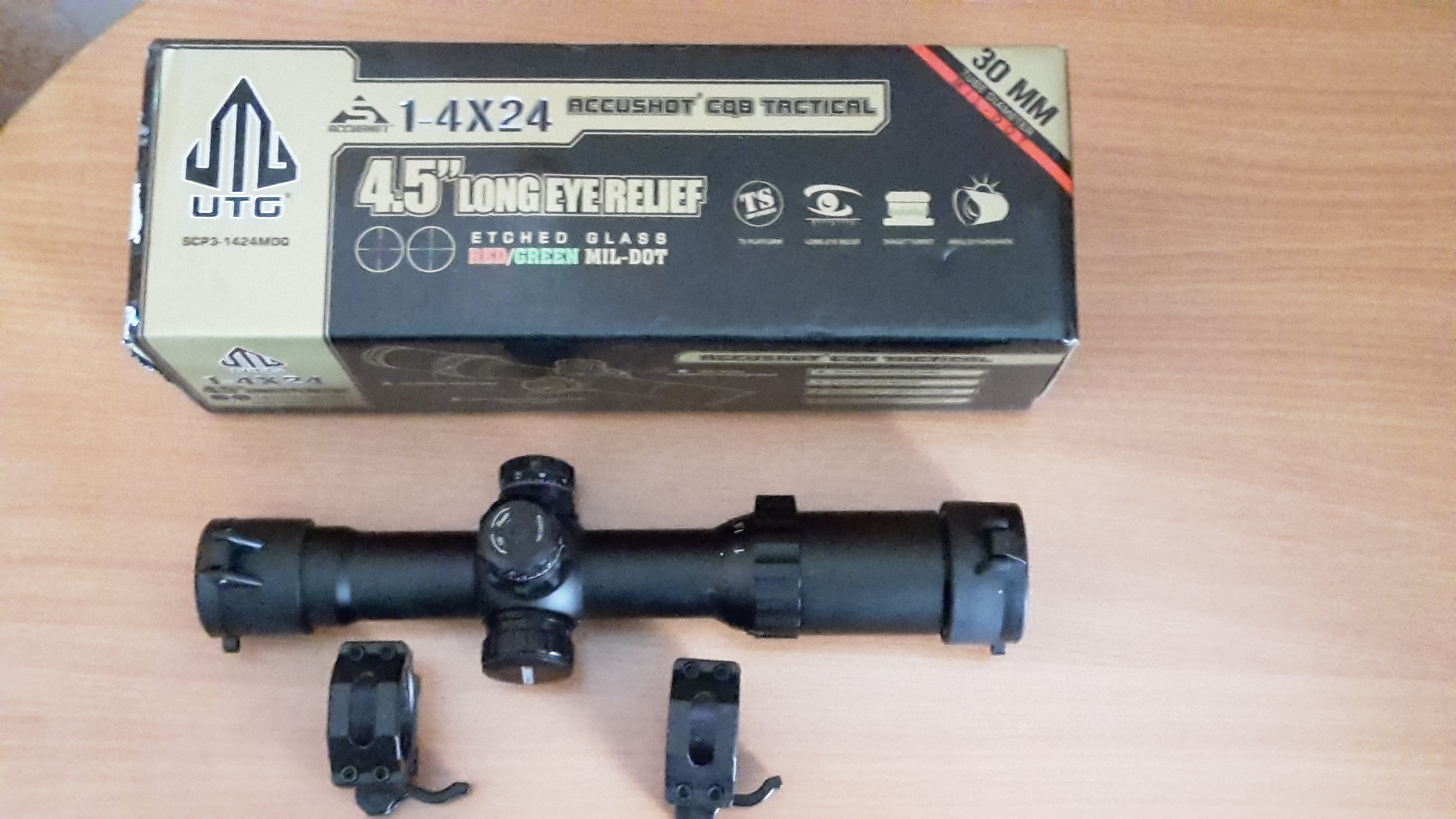Продаю новый прицел загонник Leapers Accushot 1-4х24 диаметр трубы 30 мм, в комплекте с кольцами. Милдот.Цена 6500 р. Перешлю. Тел. 8-913-194-93-85.