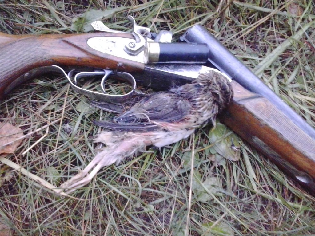 Вот и мы добыли перепела, с третьего захода Стрелял дробь номер семь. самокрут. Были днём не одного не подняли, вечром в семь часов. пока жинка грибы собирала, я решил ещё раз прочесать межу. В итоге один перепел, мы это сделали . Кое как забрал из пасти, на утку так не реагирует, думал проглотит не жуя
