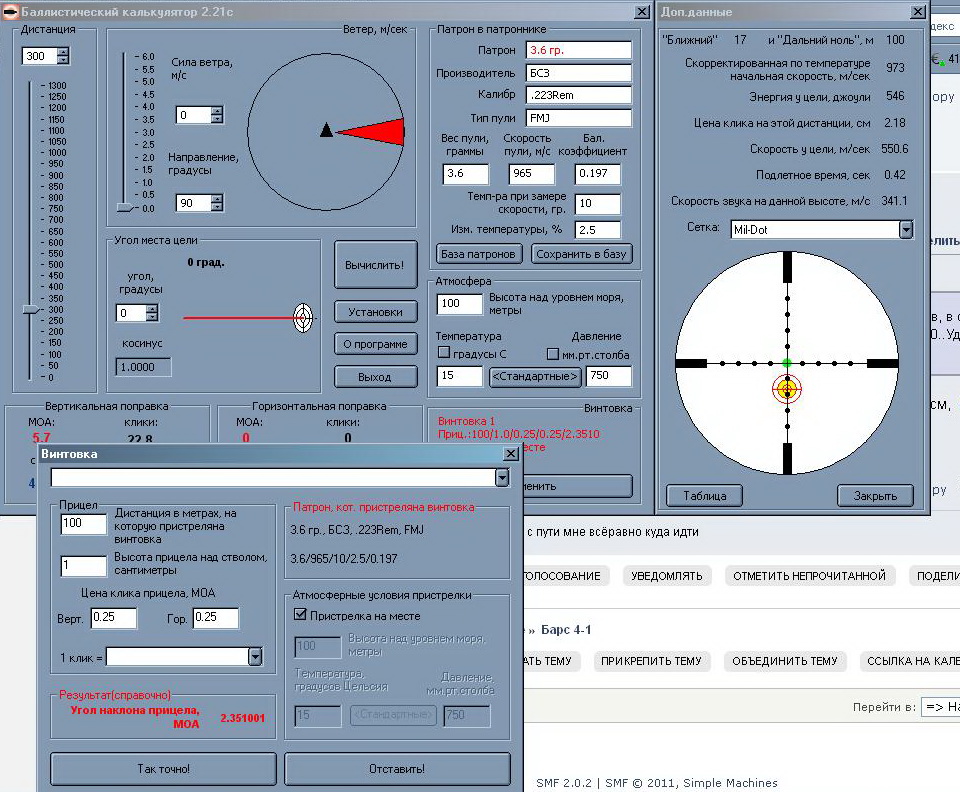 Вот расчет выстрела при стандартных условиях. Когда карабин пристрелян на 100м. Посмотрите, сколько метров превышение будет?