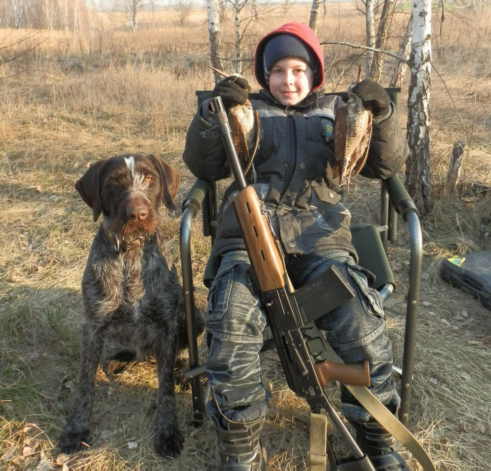 1.Порода: Немецкий Дратхаар. 2.Количество щенков (кобелей/сук) : 4/5 3.Дата рождения щенков :02.06.2016г. 4. Окрас: коричневый в седине 5.Родители щенков : Отец : Апач (11.02.12 г.р.) http://huntdogs.ru/dog_details.php?bc_tovar_id=42577 Все дипломы за рабочие качества с указанием по виду дичи : III – б/л, III – бор. Племенной класс : Второй. Оценка экстерьера : Отлично. От Родителей: Отец – Алмаз,, экстерьер – отлично, IIIут, IIIбд, IIIкр.сл., IIIк, IIIбар. Мать – Рона, экстерьер – отлично, IIIут, IIIб/д. Мать : Дисельва (Дэси) (02.08.12 г.р.) http://huntdogs.ru/dog_details.php?bc_tovar_id=42571 дипломы за рабочие качества с указанием по виду дичи : II- п/д, II – бор.д. Племенной класс : Первый Оценка экстерьера : Отлично От Родителей: Отец – Вывозной Бриско ф. Андорфен-Шахер, экстерьер – отлично, 2-IIкр.сл., IIб/д, I-2-IIут и др. и др. Бриско - очень титулованная собачка Мать – Чара, экстерьер – отлично, 2-IIIбд, IIб/д, IIIут. 6.Кинологическая организация, спланировавшая вязку : БООО(ООиР) 7.Место нахождение щенков: 12 км от Брянска: Выгоничский район, с. Палужье. 8.Ориентировочная стоимость – 15000 руб. Торг при осмотре вполне уместен. Давить цену и задерживать щеночков до полугода не планирую. Собачка Дэси, мать щенков, исключительно рабочая. Регулярно ходим на охоту, знает все виды дичи, причем работать начинала, даже ни разу не подержав в зубах конкретный вид птичек. Работает верхним и нижним чутьем, по обстановке. Отлично работает по утке, дипломов нет по причине регулярных совпадений испытаний с командировками. Управляемая, очень низкая агрессия к людям. Все время живет рядом с детьми, в том числе маленькими. Щенки выросли и готовы переезжать к новым хозяевам. Можно приезжать и забирать. Получены справки о происхождении (щенячи). Щенки прекрасно едят различную еду. Свободны 3 кобеля и 2 суки. Андрей +79003595705 mahar@mail.ru Добро пожаловать!