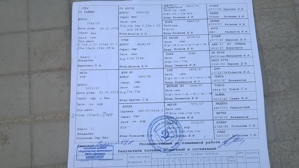 1. Порода: западносибирская лайка 2. Количество свободных щенков: сука 3. Дата рождения.: 24.03.2016 г. 4. Окрас: серый с белым 5. Родители щенков: Отец: п. ч. Таймыр ВПКОС 3749/13 Веретено К. А. Дипломы- I. IIк. I. II. III кп. II. I IIм. IIм/п. IIкс. Iб/в Мать: Тоя ВПКОС 5510/15 Толкачёв С.В. Дипломы- 2-II к.п., III м.п., II м.п 6. Вязка зарегистрированна обществом "Динамо" РОРС 7. Место нахождения- г. Заринск 8. Контакт. тел.: 8-983-603-74-63 9. Ориентировочная стоимость - 15 т.р.