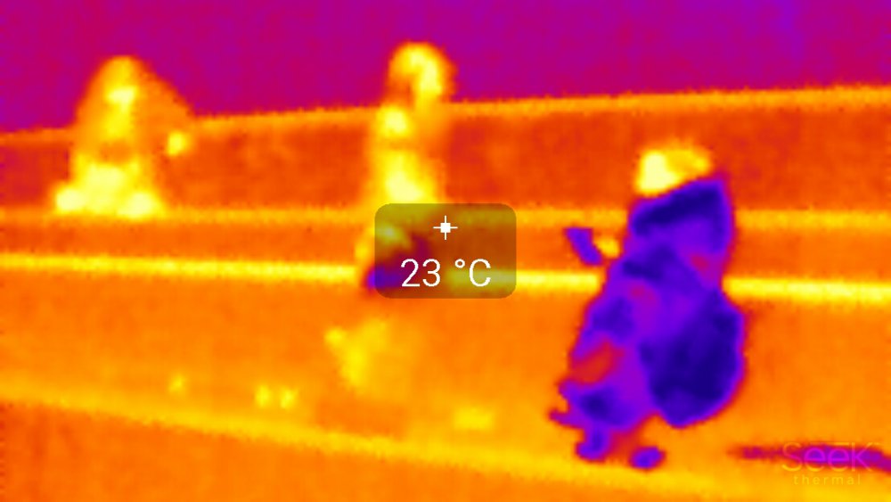 Первое видео как раз с балкона. Сам снимал калининский универмаг. Там хорошо видно как выделяются кондиционеры по температуре. Также обратите внимание на 2 авто на парковке - они различаются по спектру (видимо одна машина давно стоит). Также высотки которые не видно в темноте - тоже выделяет по спектру.