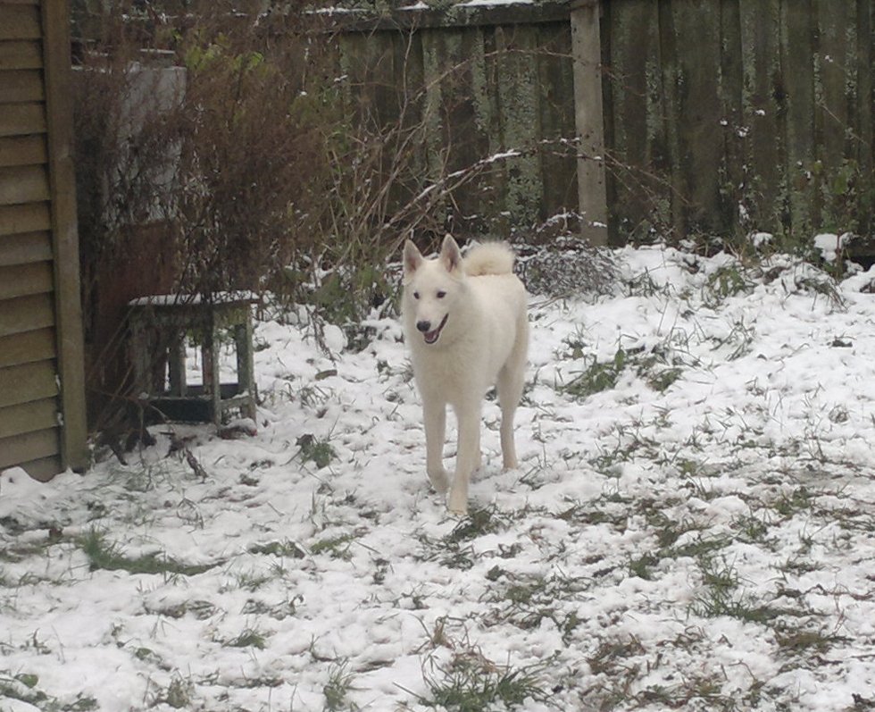 Найден белый кобель, западно-сибирская лайка, на Таллинском шоссе, Кингисеппского района, Ленинградской области 21.10.2012. Ошейника на собаке не было. На вид ему не больше 1,5 лет. ь.
