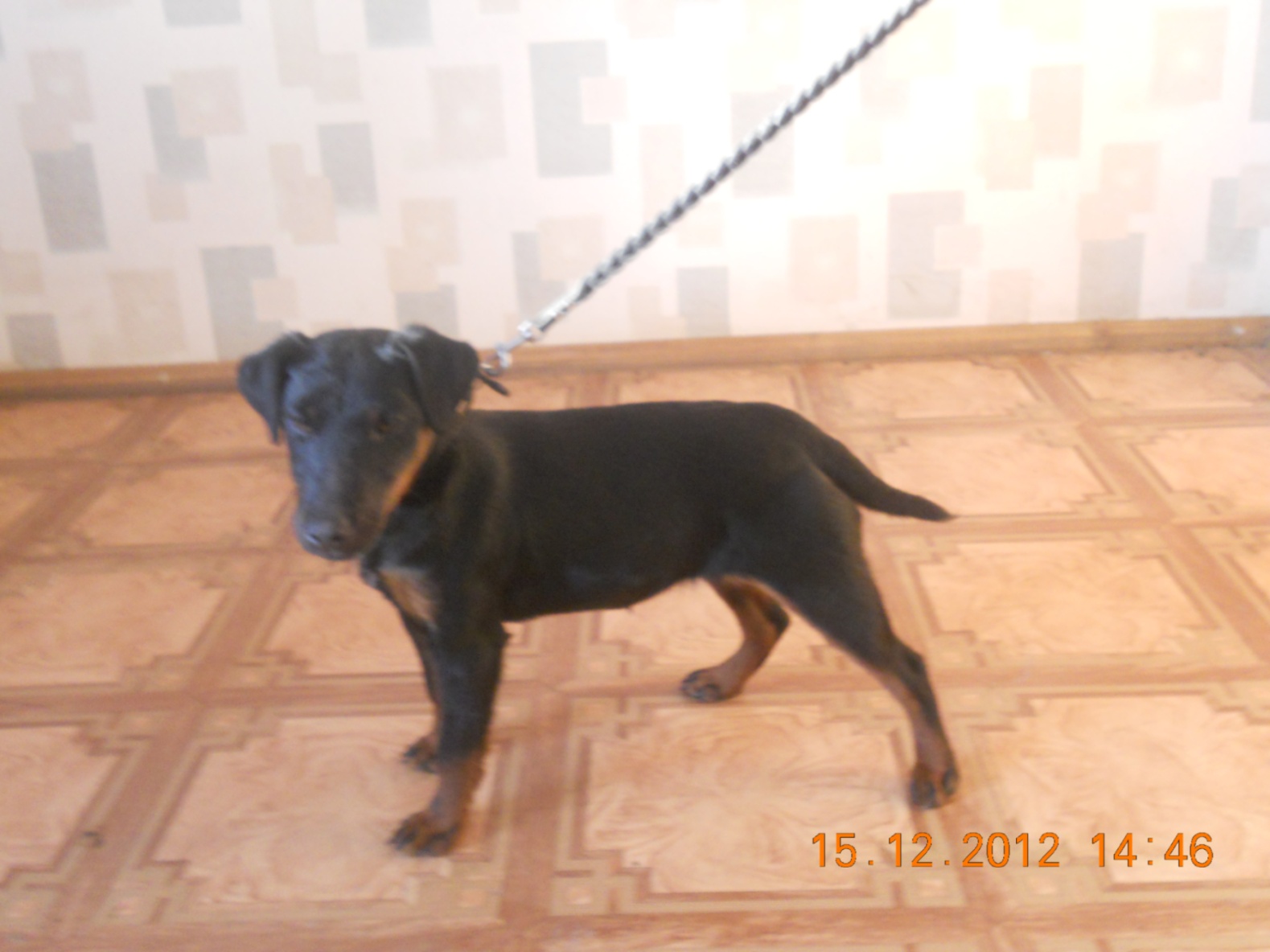Щенок ягдтерьера ,сука д.р.17.06.2012. родословная РКФ,клеймо ,прививки,зубы норма,шерсть гладкая..Отец Жиган 3-1ст барсук,1-1ст ,1-2 ст лиса. оценка отлично.Мать Бэби 3ст барсук,3 ст лиса.оценка отлично.Родители щенка охотятся ,цена 10 тыс.телефон для связи 8 923 729 69 59. Сергей.