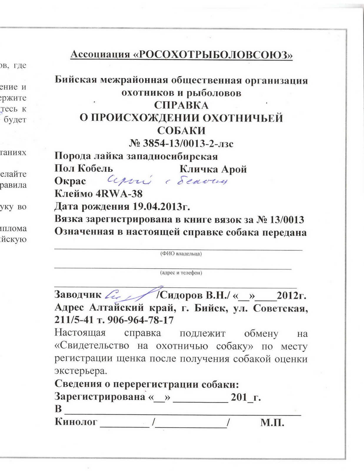 Собаки находятся в Кемеровской обл. Кобель без документов, сука с документами, так же от этой пары отдаются щенки без документов.