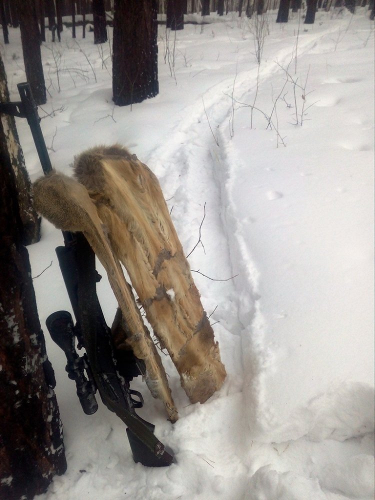 Сделал лыжи из 9мм (5-ти слойной) фанеры. Длина до изгиба около 95см, ширина 15см. Подбил "камусом" от косуль. Несколько лет собираю их и первоначально часть ушла на то, что бы подбить пластиковые лыжи (детские для горок) те под 50-60см в длину , где то 12см в ширину. Но проваливался даже по накатанной лыжне, поэтому решил сделать чуть побольше. Так то у меня нормальные под 160см в длину и так же 15 в ширину. Но иногда на тот же учет, иду по протоптанной лыжне и думаю - как задолбали эти длинные. Потому как от машины к началу идти прилично, а потом от окончания опять же иду по дорогам и тащу их, а поменьше удобнее - они у меня в рюкзак умещаются. Не уверен был, что получится что то приличное, но сегодня испытал и сам порадовался за свой успех. Не проваливаются даже по старому лыжному следу в один проход (Фото где с карабином и лыжи, причем там беговые лыжи прошли), а уж по натоптанной вообще как по асфальту. В гору забрался по буранке в такую крутизну, на которой мои "главные" лыжи давно бы уже сдались. А потом вышел в сторону от буранок и лыжни и проверил как по снегу идти. Ну проваливался до 30см (фото - 2) ,так это не 70-80 как без них. На основных лыжах я в таком же снегу проваливаюсь где то на 15-20см. Вес самоделок 2,7кг, а основных 4,8кг. Если основные подбить камусом, то вес будет как у танка, хотя и ходить так же. В общем самоделки как вариант для пробежаться по уже готовой лыжне - самое то! И главное их таскать удобнее, если уже вышел на дороги. А если понадобится выйти по лесу без троп и дорог, то не сильно вымотаешься, сильнее , чем на больших лыжах, но не сравнить с вообще без лыж.