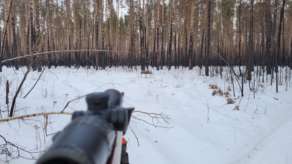 Когда расставили номера, появился загонщик с собаками. Подошёл ко мне и прямо от меня направился в загон по низу лога. Пройдя 70-80 м от меня выстрелил в воздух, затем пройдя ещё 100 м опять выстрелил в воздух. Основные номера были по ветру, относительно зверя.