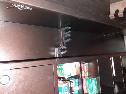 Точно как на картинке. 4 единицы войдут, полочки, патронный ящик под замком. Технологические дырки для воплощения потаенных желаний отдельных должностных лиц о прикручивании к стене - в наличии (в девственном состоянии). В связи с переездом. Б/у с ноября Пусть будет 6 тыр. Самовывоз. 9994675833