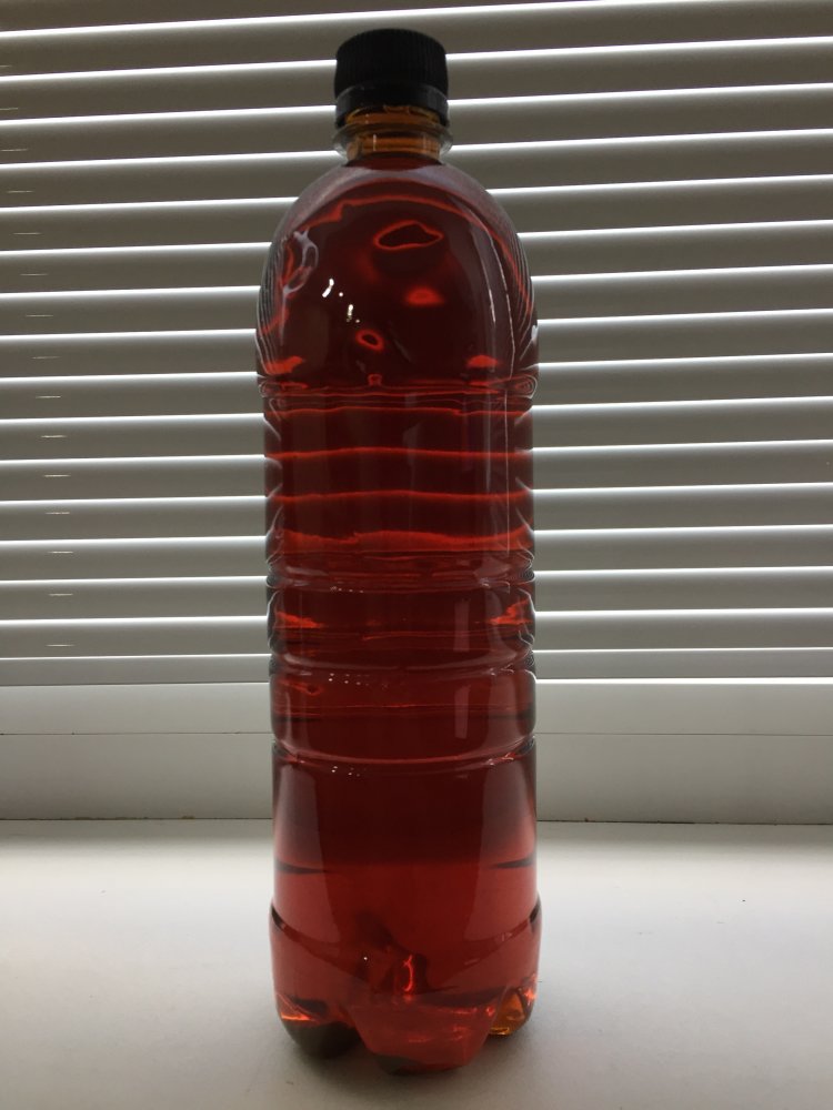 Литровая бутылка налита на отправку, сфотографировал Ее для наглядности. В большой бутылке можно рассмотреть объём самой струи.