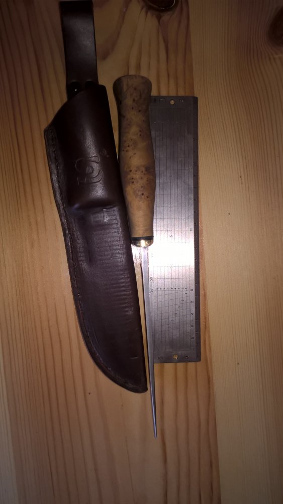 Длинна клинка 150 мм, ширина 30 мм, в обухе 4 мм, спуски от обуха. Цена 7000 р. 8-913-450-17-67 Валерий.