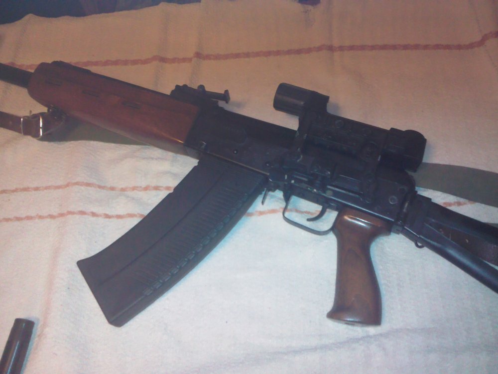 В дереве, откидной приклад с амортизатором, насадки 0,5 ; 1,0 (стандартные), F 1,0 длина 340 мм,длина ствола 430 мм, 2 магазина 5 и 8 патронов, прицельная планка,мушка автоматная,плюс коллиматорный электронный прицел, камуфлированный чехол, за все 28500. для связи 89137043702 Виталий