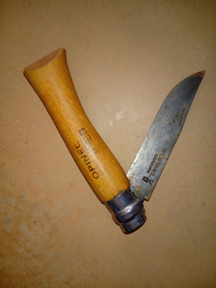 Был у меня в давнее время складник малый, зэковской работы. Открывался движением пальца на одну половинку рукоятки. Была и "зубастая" заточка вверху, для перепиливания веревки. Очень удобно на рыбалке с сетями. Утерян и очень жаль.