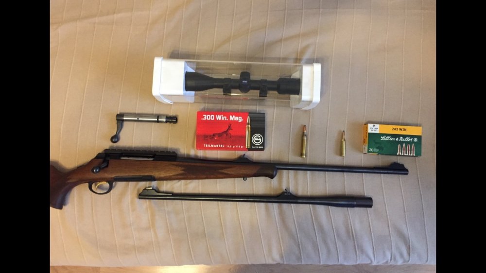 Продам карабин ( новый ) с двумя сменными стволами, Австрия, Roessler "Титан-6" Luxe, 300 win mag.+ 243 win., шнеллер, стволы 560мм.,c двумя магазинами. Покупал на Ленинградке в "13 Калибр" в сентябре 2014г., настрел: 0 выстрелов по обоим стволам. Была только холодная пристрелка в самом магазине. Хранение в сейфе, никуда ни разу не выезжал, только для регистрации. Есть чехол,дефектов эксплуатации не имеет. Так же есть оптика новая к нему Carl Zeiss Terra 3-9x42. Есть пачка патронов 300win mag Geco, пачка патронов 243 win Sellier&Bellot. Цена -125 000руб. за карабин. Нахожусь в Москве (916)531-три0-семь9. P.S. Продаю по причине переезда.