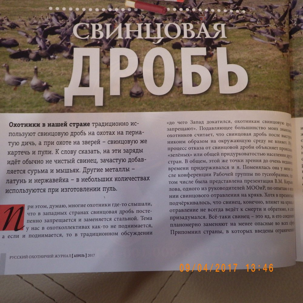 Объясню почему создал данную тему. Буквально только что прочел статью в свежем номере Русского Охотничьего журнала о вреде использования свинцовой дроби и ее губительного эффекта на фауну. В статье были приведены примеры губительного влияния свинцовой дроби не примере исследований в охотхозяйствах США (статью позже отсканирую и выложу на суд народа). Более того были приведены примеры не только того, что утки\гуси заглатывают свинец и травятся сами, но и того что травятся хищники, которые поедают этих уток гусей. Но самое странное в этой статье было то, что в итоге автор написал, что мясо отравленной свинцом птицы в принципе безопасно при употреблении. Т.е. написал взаимоисключающие факторы. Ну да оставим сие на суд главного редактора журнала (его авторитет и знания я, кстати очень уважаю).