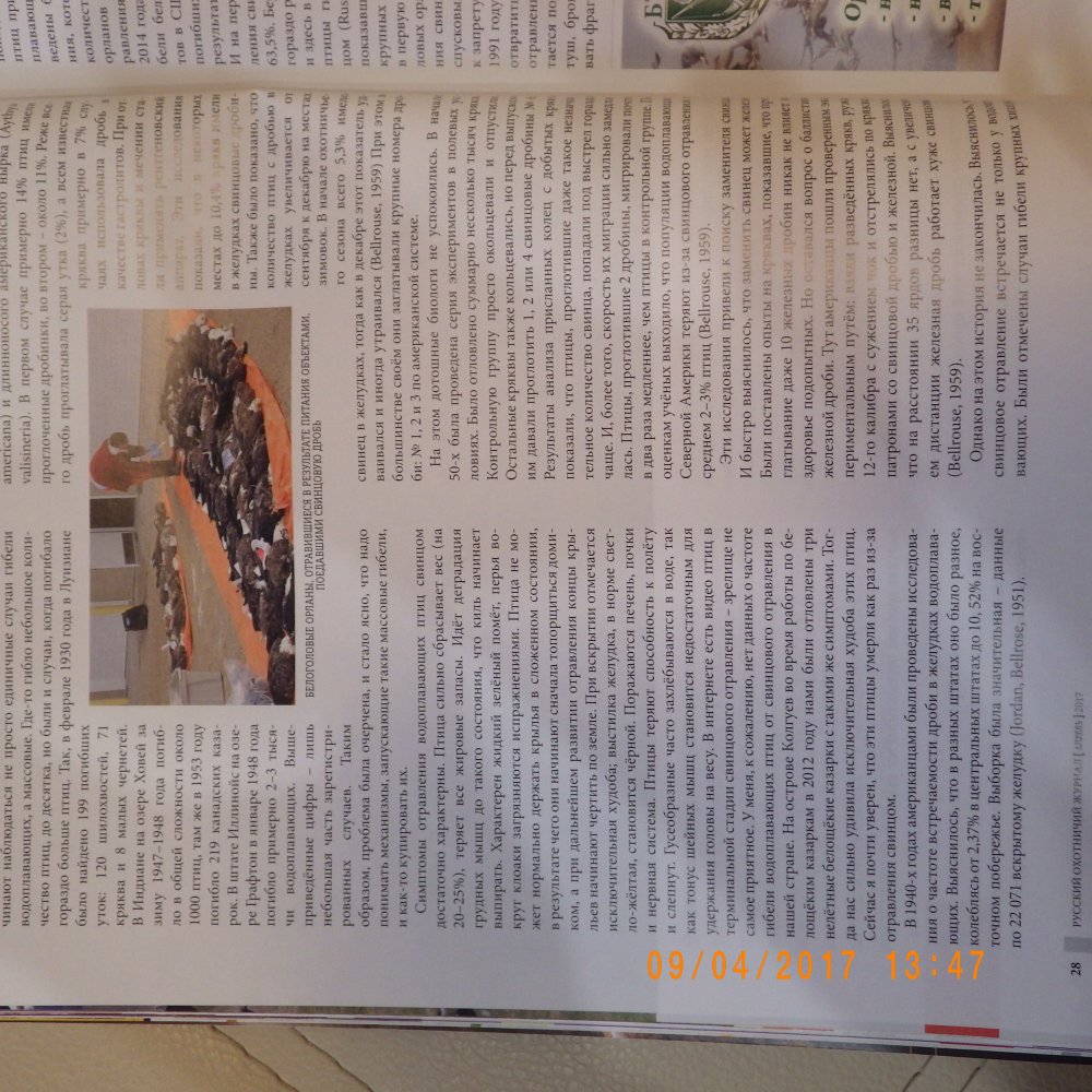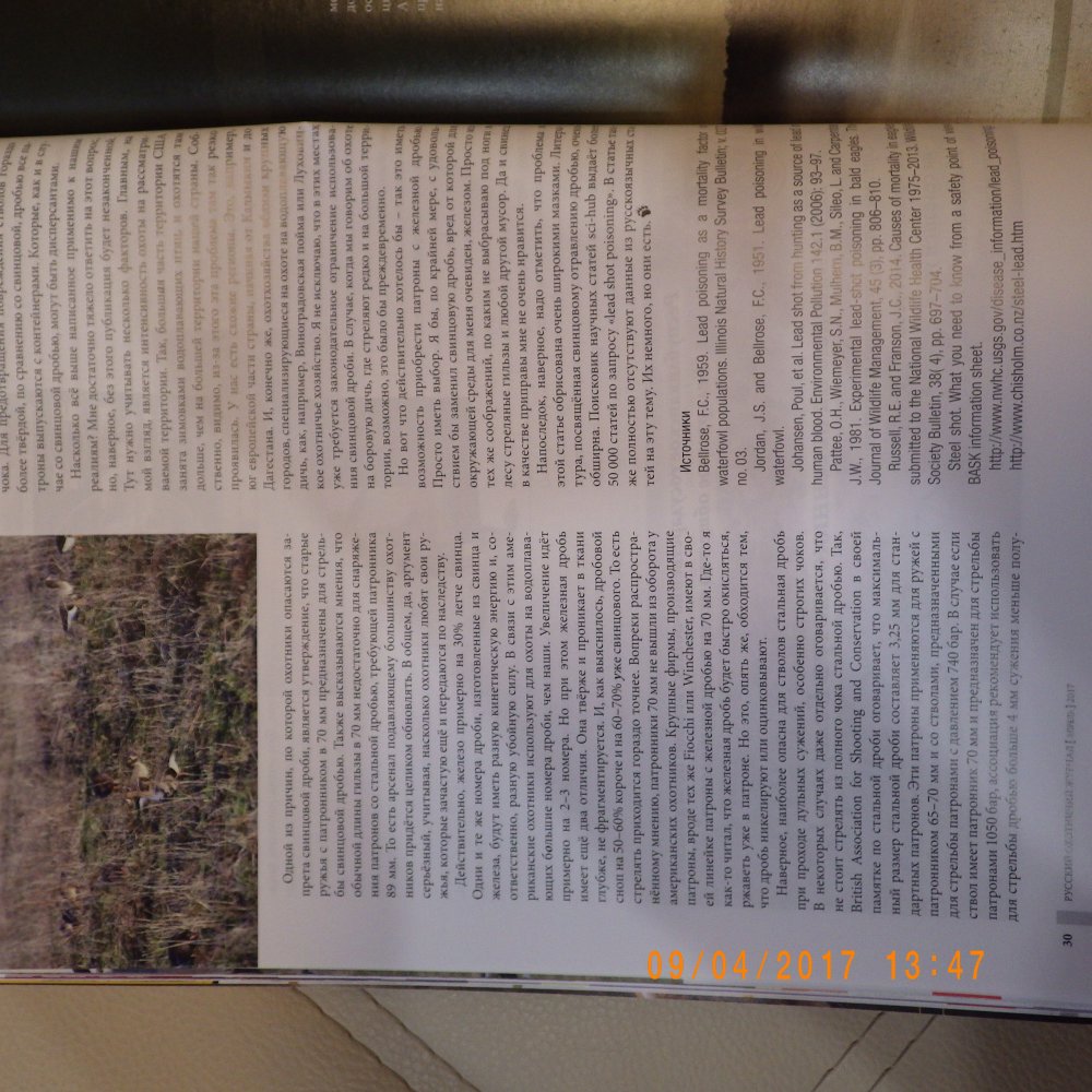 2. Я 8 лет активно охочусь на водоплавающих и ни разу не встречал признаков отравления свинцом ни у одной птицы и никогда не находил непонятно от чего погибших птиц. Что у нас дробь свинцовая менее вредная что ли ?)....