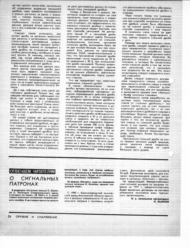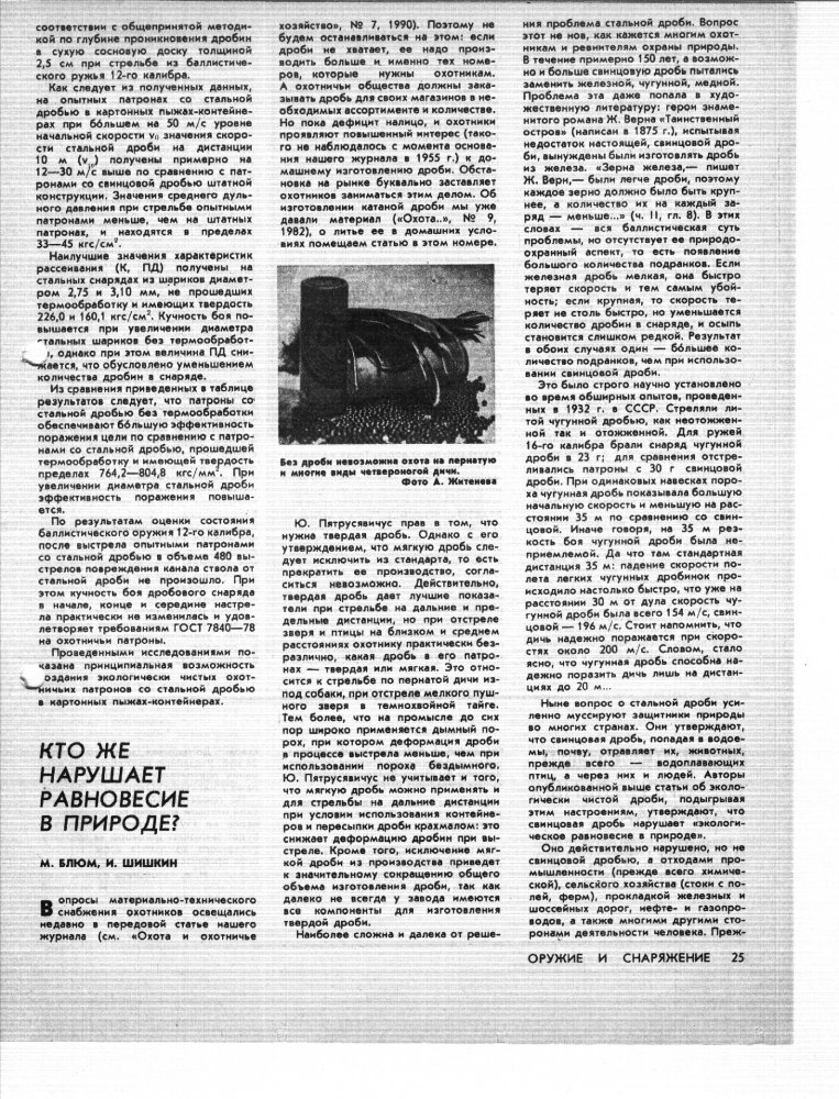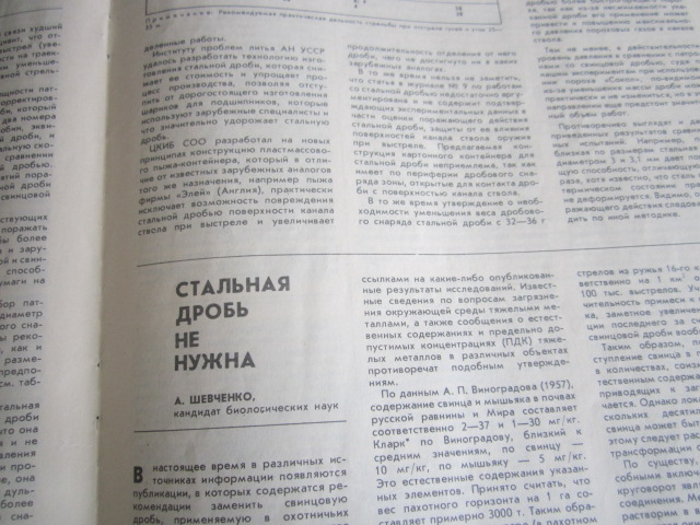 В журнале за 1991 год как раз приводятся данные о содержании свинца в почве обширного региона России, которое на тот момент было вдвое ниже, чем у наших коллег. Именно в почве, на охотничьих угодьях, но никак не в желудках пернатых.