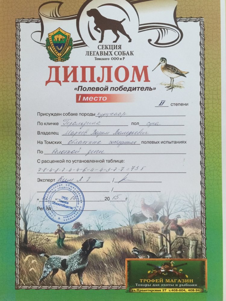 Ожидаются щенки немецкого курцхаара в конце апреля ,.От победителей полевых состязаний по болотно -полевой дичи Томской области. отец: Атила оф Наслука (Болгария) ВПКОС №4314/15; РКФ №3971350 Полевой Чемпион, Серебряный призёр состязаний по вольерному кабану Юный чемпион России Оценка экстерьера: отлично; МЗМ Полевые дипломы: II,2-III перепел,.2-III дупель., II ВП., I,II в/б(барсук) , II,III в/к. Класс: первый племенной класс; Тест на дисплазию:HD-A Владелец: Кольяков Р.Г.. мать: Геральдина ВПКОС №4110/13 РКФ №1466322 Полевой Победитель Оценка экстерьера отлично МЗМ Полевые дипломы 5-III перепел,2-II дупель,2-II утка,1-III-КР.СЛ класс:первый племенной класс; отлично 105 баллов МЗМ Владелец :Марков В.В. Дата вязки 18.02.17. Вязка зарегистрирована в кинологическом клубе Альянс, г. Томск. Щенки будут иметь документы от полевых победителей РКФ и РОРС. Цена на щенков 20 тысяч, возможен торг. Ведется предварительная запись на щенков. Телефон владельца: 89138084141 Вадим 89138516616