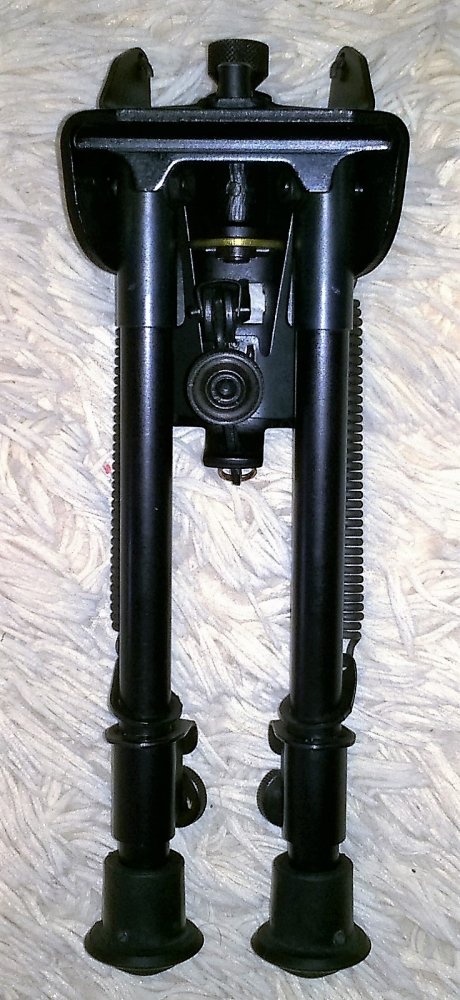 База сошек – цельная, прочная. Крепятся сошки под цевьё за антабочный винт или за ствол оружия. Ножки со встроенными возвратными пружинами быстро и легко складываются. Длина ножек плавно регулируется от 230мм. до 330мм. Каждая ножка состоит из 2-х секций. Длину можно регулировать на любую высоту, с высокой точностью. Выдвинуть на нужную длину, зафиксировать стопорным кольцом. При необходимости сложить сошки нужно ослабить стопорное кольцо и они автоматически сложатся. При выдвижении ножки до конца, она автоматически стопориться. А при нажатии на кнопку стопорного кольца – автоматически складывается.
