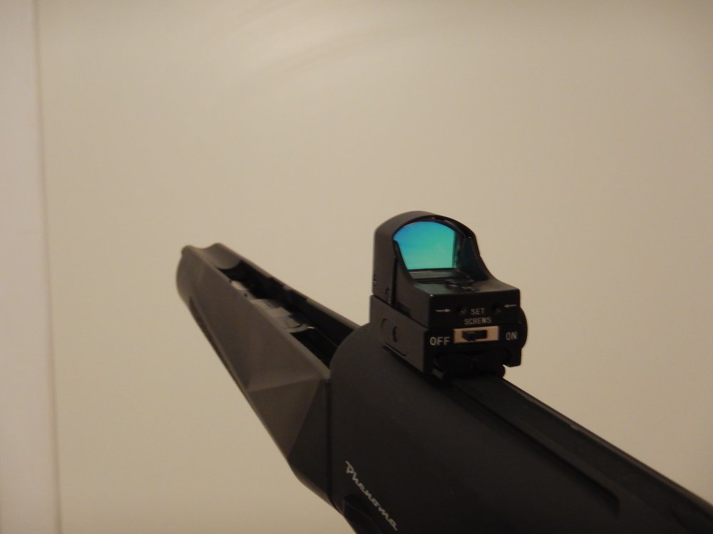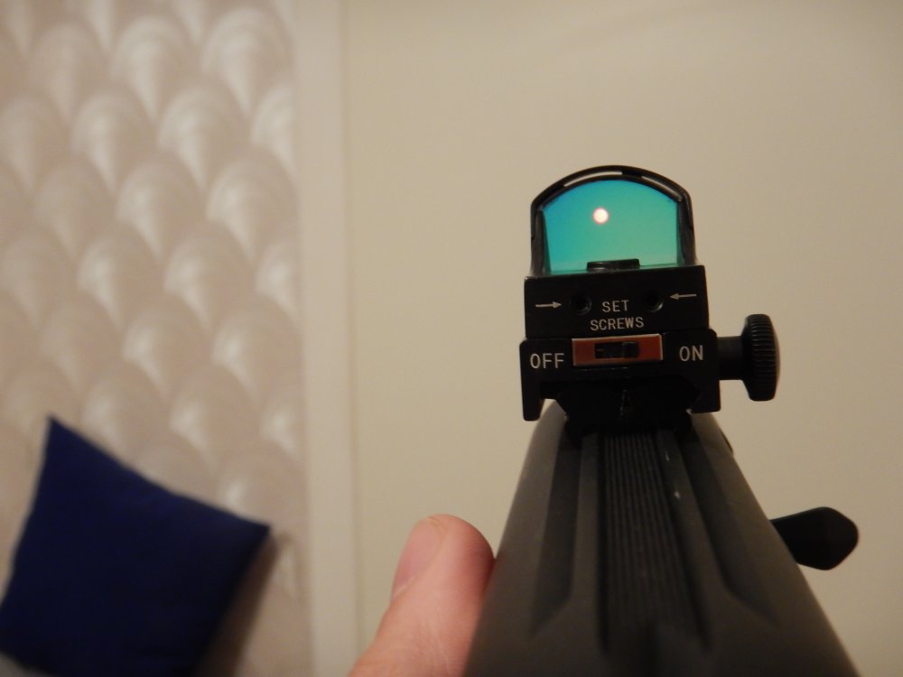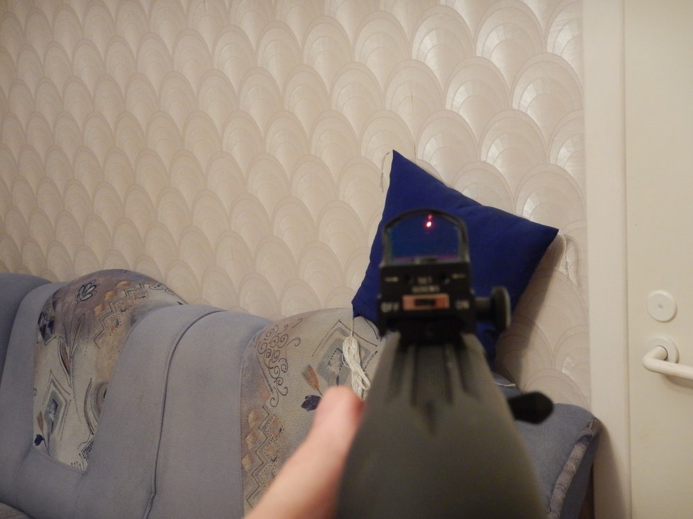 Трудно ловить прицельный знак фотоаппаратом в одну харю. Но при правильной вкладке красная точка по центру прицела.
