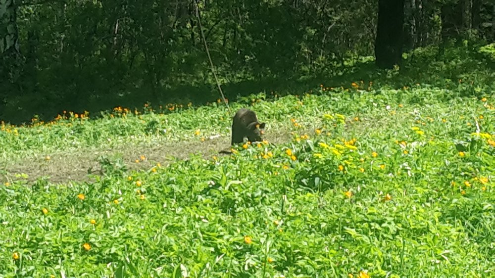 Я бы и познакомил, но близко нельзя было мелкого подводить. Он издалека послушал косолапого.