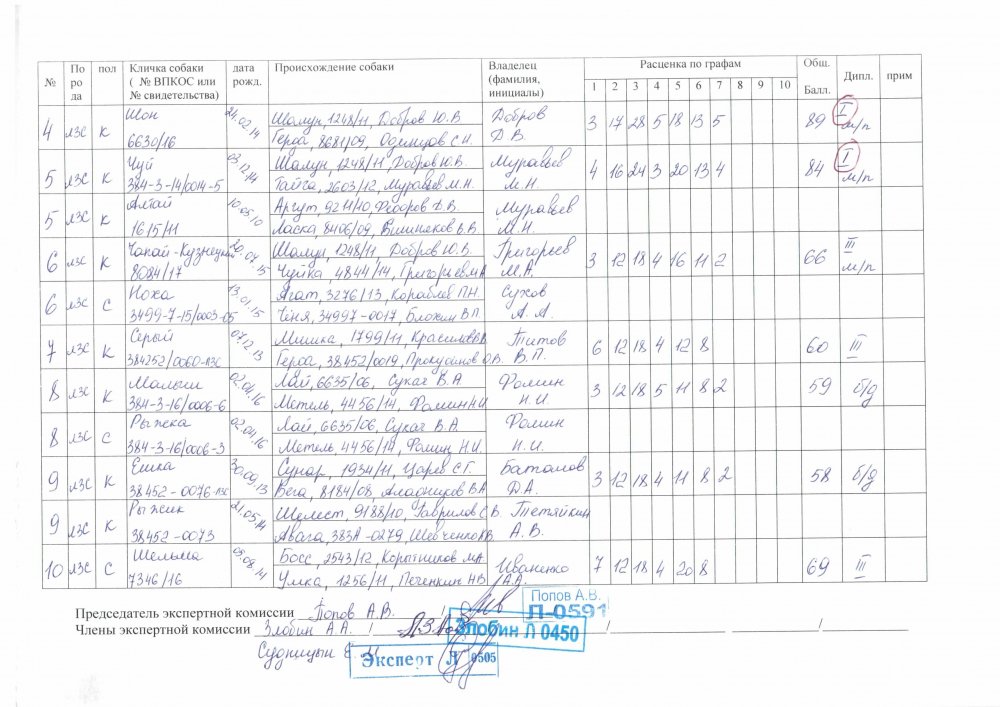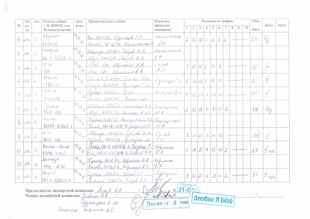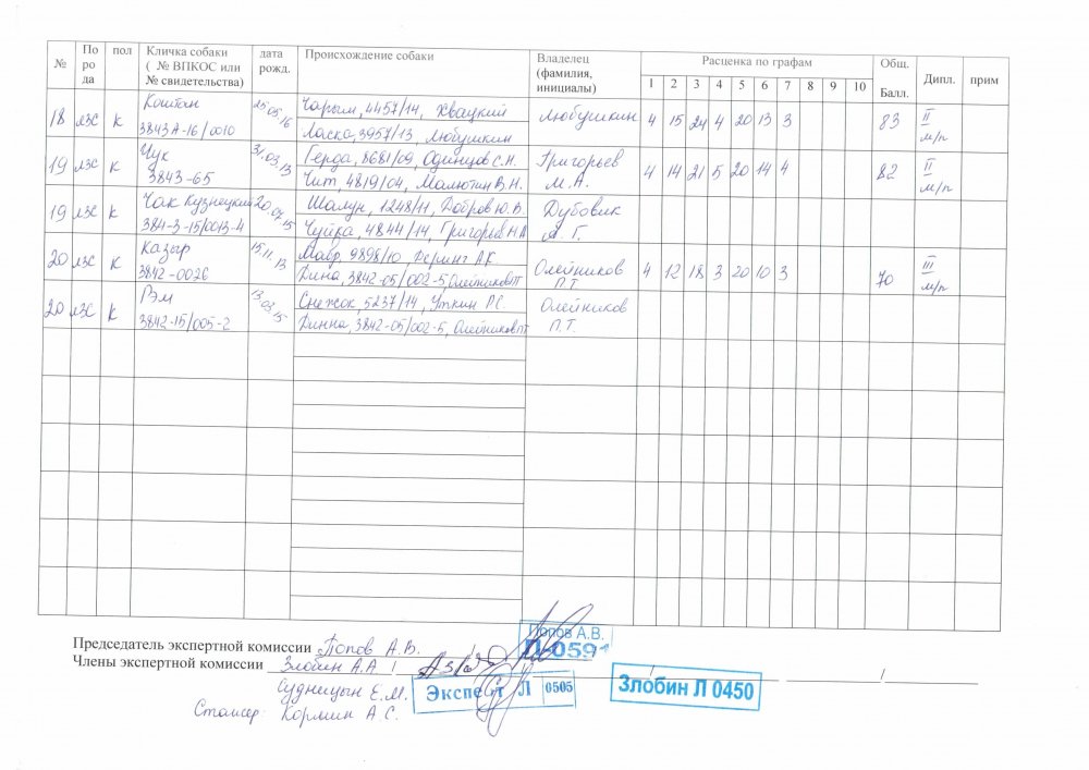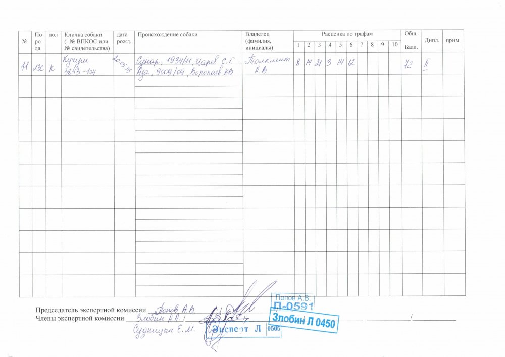 В связи с этим исходя из рапортичек, собакам выступавшим под №4, для получения диплома не хватило буквально одного балла за "смелость и манеру облаивания" (графа №2 в таблице оценок).