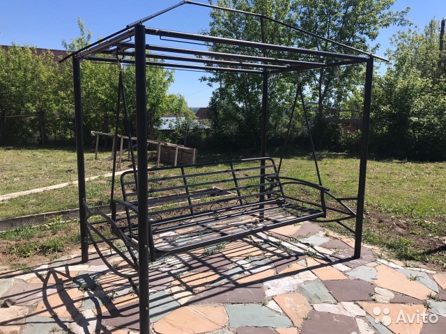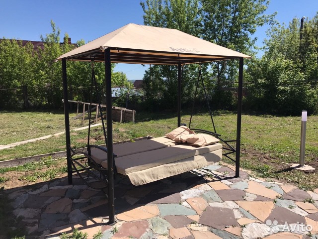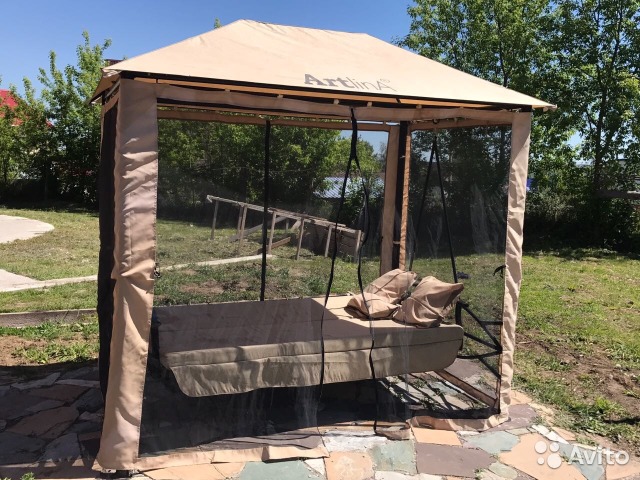 Качели от производителя Artlina. Каркас изготовлен из стальных труб с антикоррозийным покрытием, диаметром 38 мм. Сиденье раскладывается в кровать, материал тента - полиестр, не промокает и не выгарает от солнца. В комплекте маскитная сетка и подушки. Размеры каркаса: 2,3 м х 2,3 х 1,5 (длина х высота х ширина), размеры матраса: 1,86 м х 1,2. Эта качеля прекрасно впишется в ваш зелёный островок. Цена: 24 000 руб. Возможна доставка, сборка. Также в реализации есть вся продукция Artlina. Тел.: 8 913 011 0551