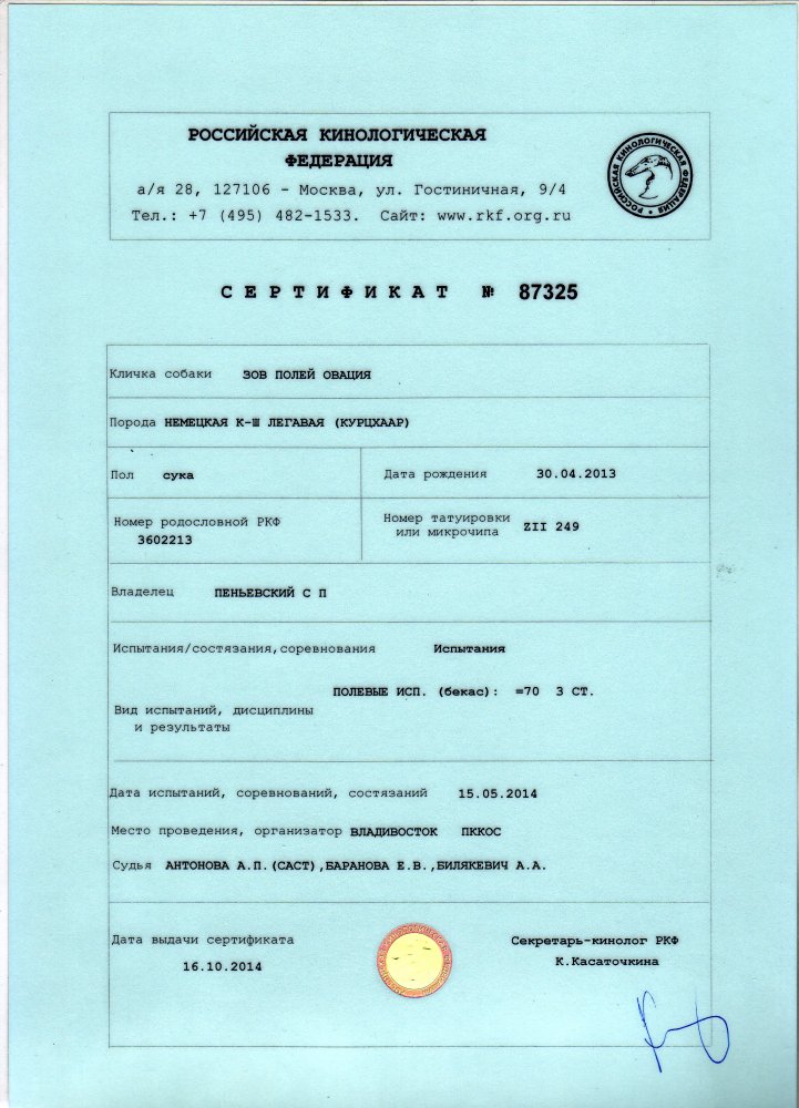@Ovacia, У меня дочька его Роуз 1 год 3 месяца огонь собака. Дипломы и кубки просто гребёт. Птицу чует на полном ходу, стойку держит. Прелесть а не собака.