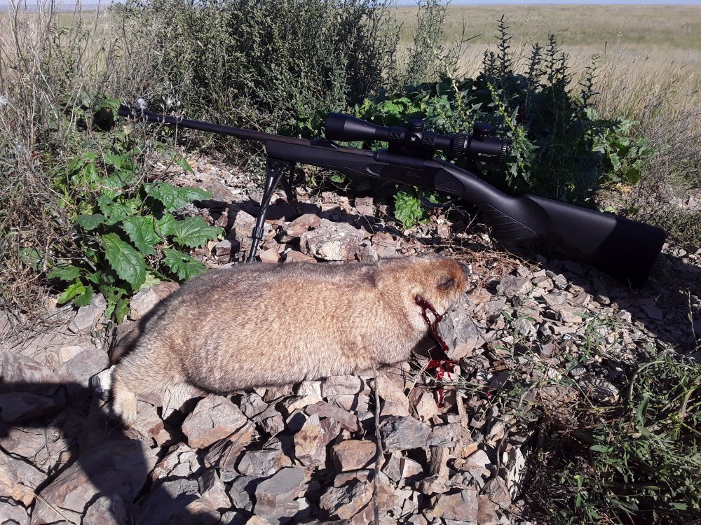 Проверили ранним утром обстановку на знакомых сурчиных городках. До 9-30 ни один сурок не вышел. Пошли другим путём. С подхода, скрадом, товарищ на одной из нор взял одного, уже ближе к 11-00, с дистанции около 40 метров, калибр 223. Поздравил его с открытием. При разделке тушки обратили внимание на хороший объем нутряного жира, хотя сам сурок небольшого веса, около 6-ти кг.