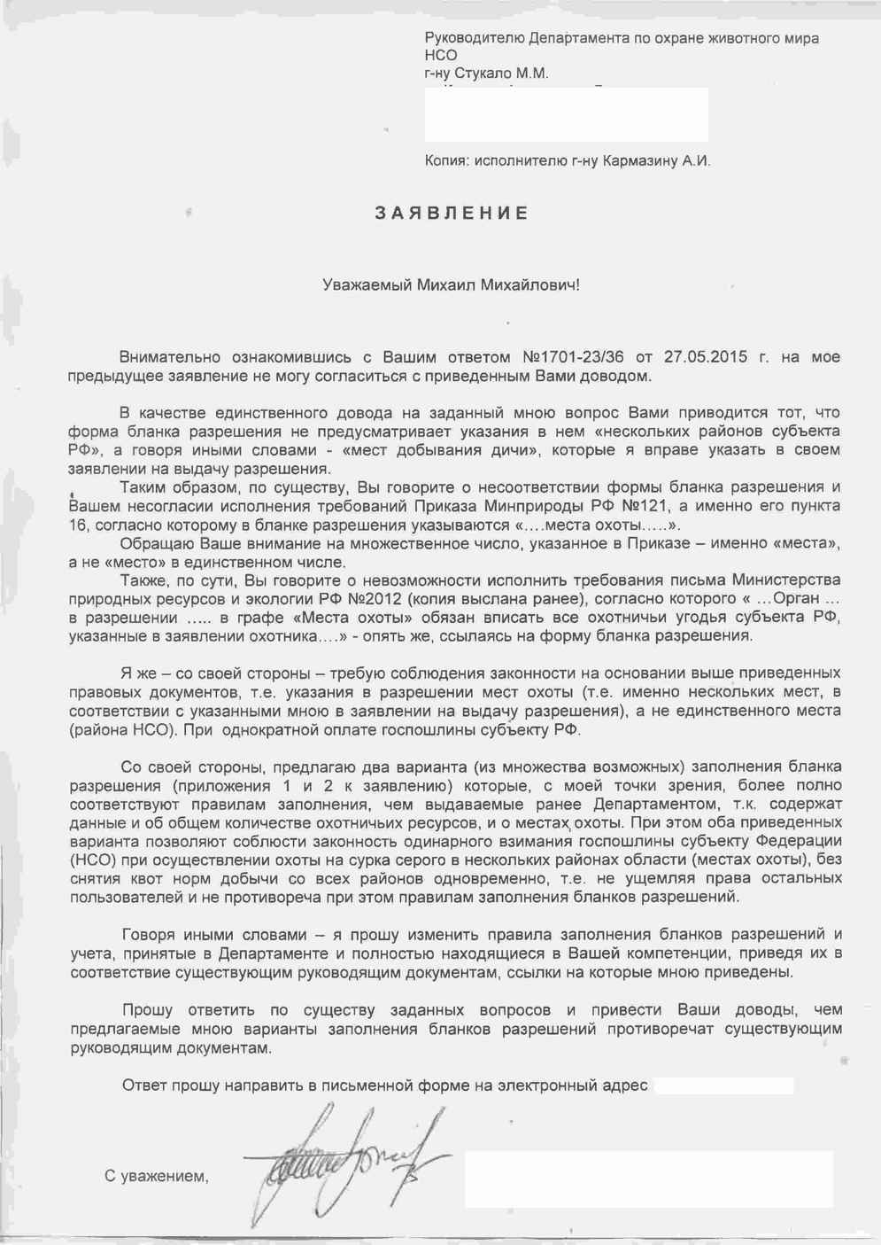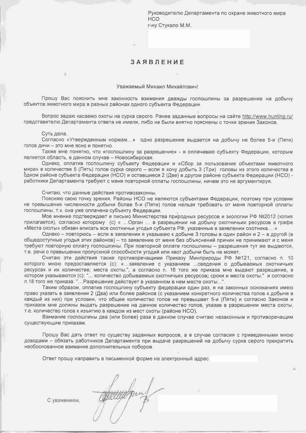 Ввиду того, что тема "Вопросы и предложения Департаменту..." --- сдохла - выложу здесь, как в тематической ветке. Ввиду того, что на заданные вопросы (по сурку серому) ответов не поступило - пришлось такое вот заявление им отправить.... В файле. Отправлял в скан-виде, по электронной почте.