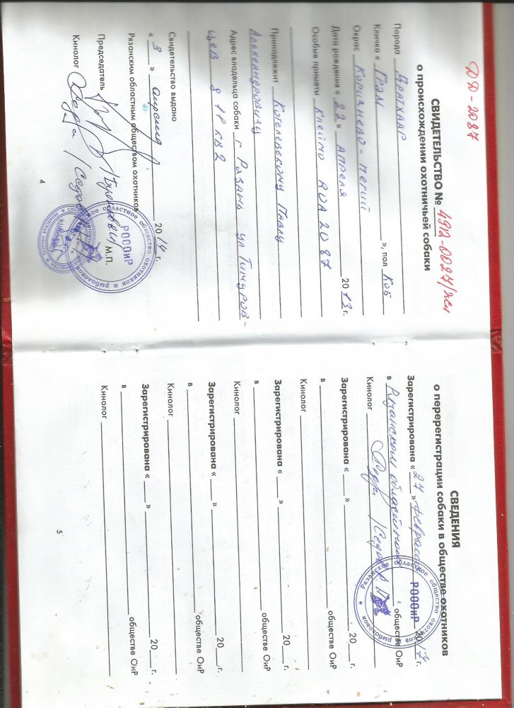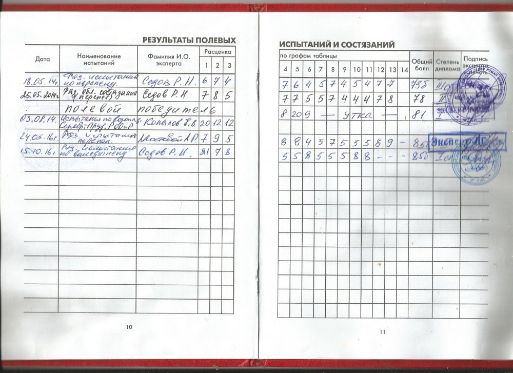 Щенки Дратхаара Рождены 19.06.2017 г. Калуга Кобелей-2 Сук -1 Окрас коричнево-пегий Телефон 89805141062 Цена: 25000(Возможен торг для настоящих ценителей охоты с легавой) Мать ГЕРМИОНА Дата рождения: 17.12.2012 Окрас: Коричнево-пегий Страна / Вид регистрации: ВПКОС (Россия), № регистрации: 4947/14, Св-во на охот.собаку РФ, № 484-0012ЖЛ, Страна происхождения: Россия, город (место нахождения собаки): Калуга Владелец: Хохряков Андрей Викторович Отец Отец: CHARLY vom WOLFSHOF, ВПКОС (Россия), 4671/13, Коричнево-пегий Мать Мать: ДАНА, ВПКОС (Россия), 4376/11, Коричнево-пегий, отл., 1-IIIб/д Экстерьер Отлично 1-й плем.кл. Дипломы: фазан-1-III ст.IV Волгоградские окружные комплексные состязания континентальных легавых Чутье - 17|Быстрота поиска - 7|Мастерство - 7|Потяжка - 5|Стойка - 5|Подводка - 8|Стиль хода - 4|Стиль стойки - 5|Стиль хода, потяжки и подводки - 5|Постановка - 7|Послушание - 7| Общий балл (сумма) = 77 баллов Главный эксперт: Юшин В.В., Эксперт: Смоляга В.И., Эксперт: Смирнов Н.Е., утка-1-III ст IV Волгоградские окружные комплексные состязания континентальных легавых Чутье - 18|Поиск - 10|Настойчивость - 11|Вязкость - 7|Подача - 16|Послушание - 6| Общий балл (сумма) = 68 баллов Главный эксперт: Кудактин А.Н., категория: Вторая Эксперт: Плешков В.В., категория: Третья Эксперт: Яговкина И.Л, категория: Третья Брянские межобластные состязания легавых собак всех пород по болотной дичи памяти эксперта Всероссийской категории - Иванюшина В.А., 30-31 мая 2015г. Дальность - 6|Верность - 7|Манера причуивания - 4|Быстрота поиска - 7|Манера поиска - 7|Потяжка - 4|Стойка - 5|Подводка - 7|Стиль хода - 4|Стиль стойки - 5|Стиль хода, потяжки и подводки - 4|Самостоятельность - 6|Послушание - 6| Общий балл (сумма) = 72 баллов Главный эксперт: Захарченко А.И. (Брянск), категория: Первая Эксперт: Сорокин О.П. (Калуга), категория: Первая Эксперт: Хроленко Н.Н. (Брянск), категория: Третья Всероссийские комплексные состязания дратхааров по УТКЕ посвященных памяти первого Президента НКП «Немецкий дратхаар» К.В. Густылева, 25-27 июля 2014г. утка-1-III ст Чутье - 16|Поиск - 8|Настойчивость - 7|Вязкость - 6|Подача - 16|Послушание - 7| Общий балл (сумма) = 60 баллов Главный эксперт: Стяжкин П.Г. (Тамбов), категория: Всероссийская Эксперт: Курдюков А.А. (Кашин), категория: Вторая Эксперт: Фесечко В.Г. (Краснодар), категория: Вторая Всероссийские комплексные состязания дратхааров по ПОДАЧЕ ДИЧИ С ВОЛОКА посвященных памяти первого Президента НКП «Немецкий дратхаар» К.В. Густылева, 25-27 июля 2014г. Чутье - 18|Манера поиска - 7|Последовательность - 6|Настойчивость - 7|Доклад (анонс) - 6|Отношение к битому зверю - 15|Послушание - 7| Общий балл (сумма) = 66 баллов Главный эксперт: Голик С.В. (СПб), категория: Всероссийская Эксперт: Смирнов Н.Е. (Калуга), категория: Вторая Эксперт: Остроухов В.В. (Волгоград), категория: Третья Всероссийские комплексные состязания дратхааров по полевой дичи (перепел) посвященных памяти первого Президента НКП «Немецкий дратхаар» К.В. Густылева, 25-27 июля 2014г. Диплом: III степени, Место: 13 Звание/Титул: Лучшая молодая собака Дальность - 6|Верность - 6|Манера причуивания - 4|Быстрота поиска - 6|Манера поиска - 6|Потяжка - 3|Стойка - 4|Подводка - 6|Стиль хода - 4|Стиль стойки - 4|Стиль хода, потяжки и подводки - 3|Самостоятельность - 6|Послушание - 6| Общий балл (сумма) = 64 баллов Главный эксперт: Сорокин О.П. (Калуга), категория: Первая Эксперт: Гроссман С.Ю. (СПб), категория: Вторая Эксперт: Белый Ю.А. (МО, Королёв), категория: Вторая 