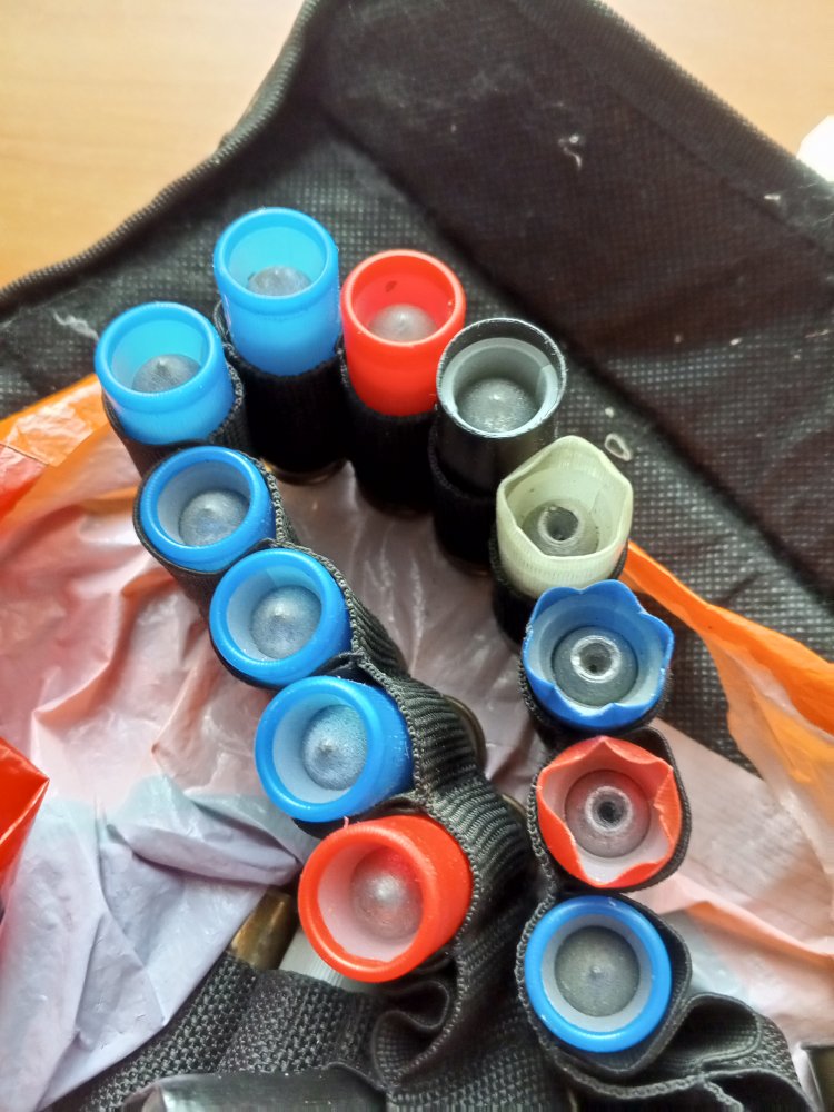 Александр, вот пулевые с Полева 2 на сунаре 2 , 3 грамма, отлично зимой на соревнованиях в Новосибе показали по 'кабану' в биатлоне,- омичи отвечали за патроны и мы везли в 'Уазе ' на всю Россию. Пули Полева 3 сам заряжал Соколом 2,2 грамма и очень хороши зимой(они по весу как и Полева 2, но экспансивные, что более поронее(до 70 метров, а дальше как Полева 2). Сокол и Сунар зимой работали на гут. Можно добавить,-Дима 'Свирепый'(Ганза, из Екатеринбурга) такими патронами с П2 из гладкого ствола комби через оптику проверял кучность сериями на разных дистанциях и даже на 150 метров кучность была почти как из нарезного(конечно траектория круче и скорость меньше, но факт хорошей кучи был налицо, мишени на Ганзе выкладывал).