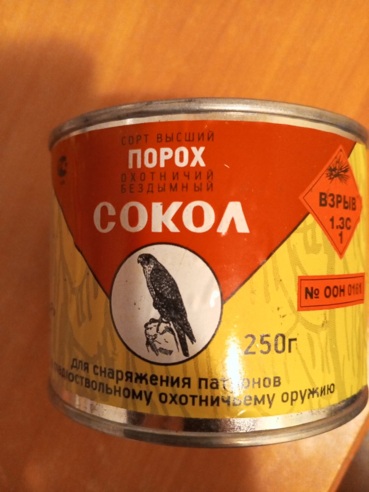 У нас Сокола вообще нет. Нашел одну заначку 1998 года. Разошлась быстро. Свою компанию напарников обеспечил. Стреляем. Слава долгожителю Соколу! Цены на новые пороха кусаются. И этих на сегодня нет в продаже.