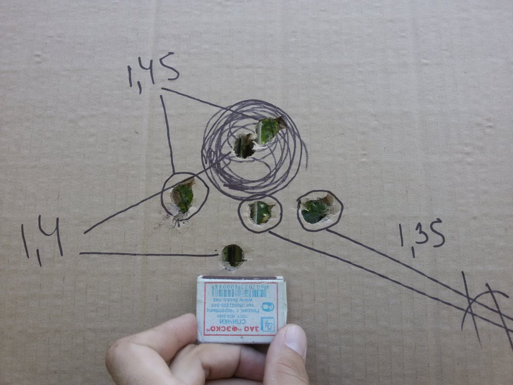 Вот мишень с пристрелки ШШ на 50 метров но сейчас под нее больше пороха ложу